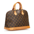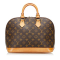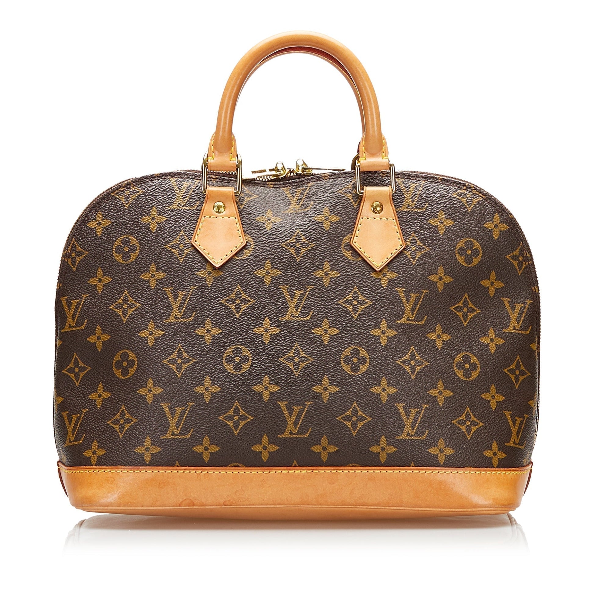 The Monogram Alma PM is crafted of Monogram Canvas and features a leather trim, rolled leather handles, a top zip closure, and an interior slip pocket.
