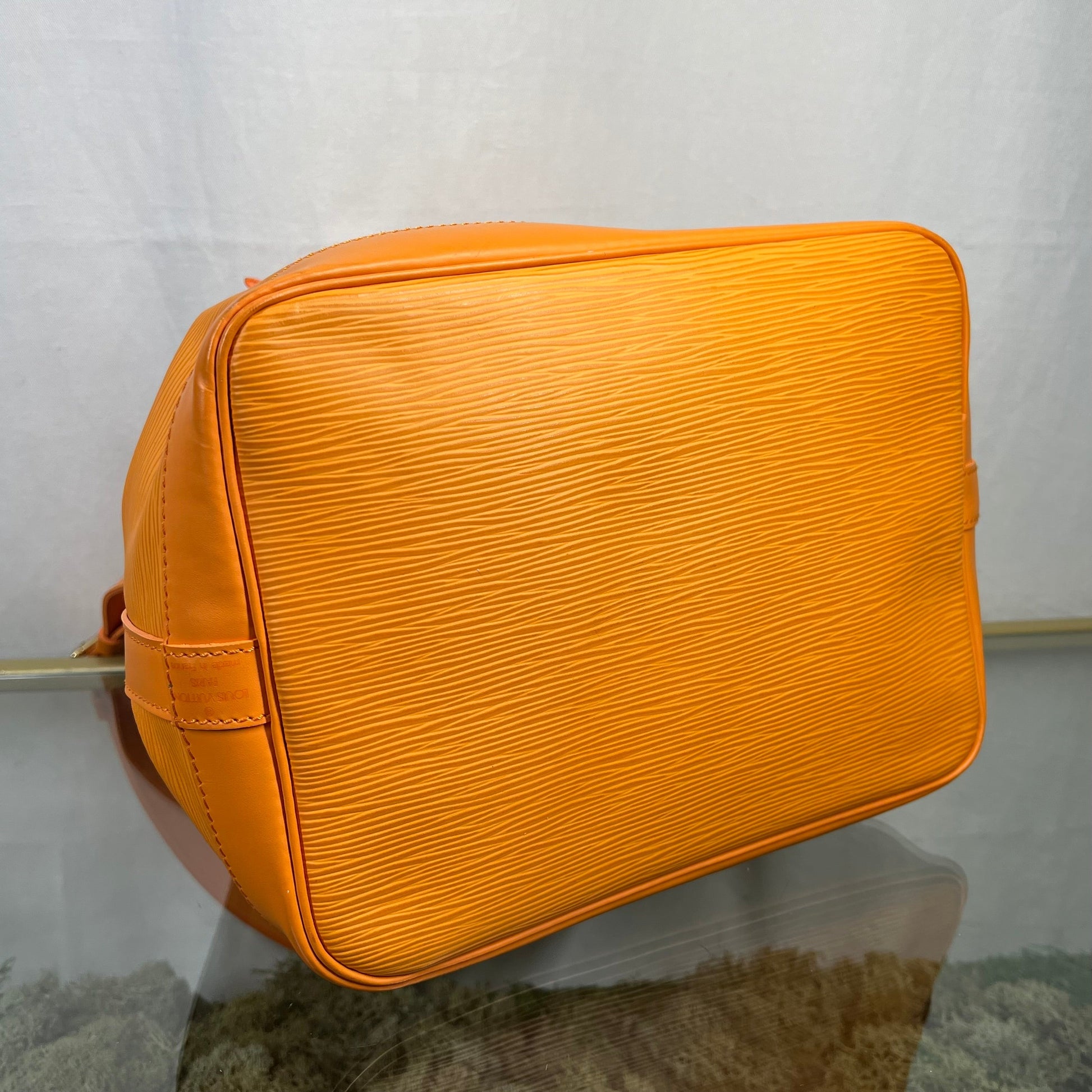 This vintage bucket bag, crafted from luxurious mandarin Epi leather, is a chic addition to your wardrobe. The iconic Louis Vuitton brand delivers the perfect combination of style and functionality with the Petit Noe, making it a must-have for any fashion-savvy individual. Carry it with you for a sophisticated touch to any outfit. Good Overall Condition