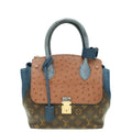 - Material: Brown Coated Canvas and Brown Ostrich Leather with Blue Calf/Python Leather