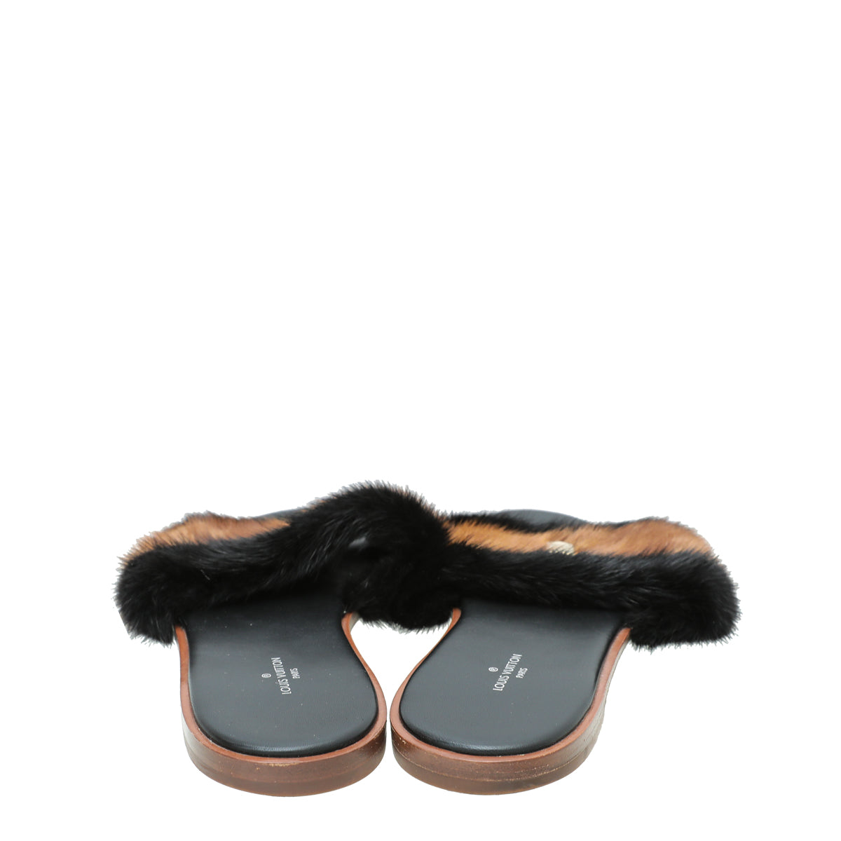 Louis Vuitton Bicolor Lock It Mink Fur Flat Sandal 40