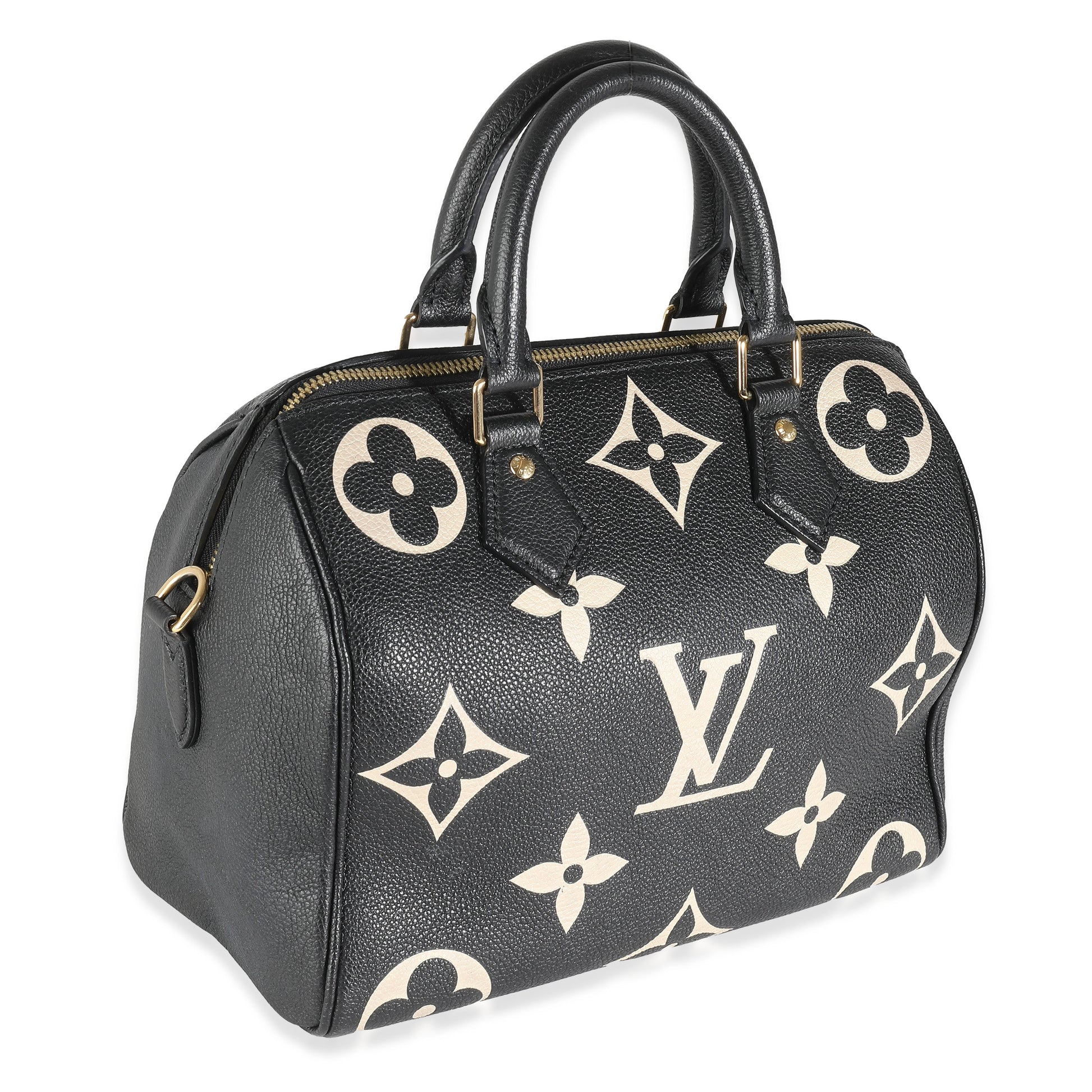 LOUIS VUITTON Black Beige Monogram Empreinte Speedy Bandouliere 25