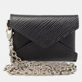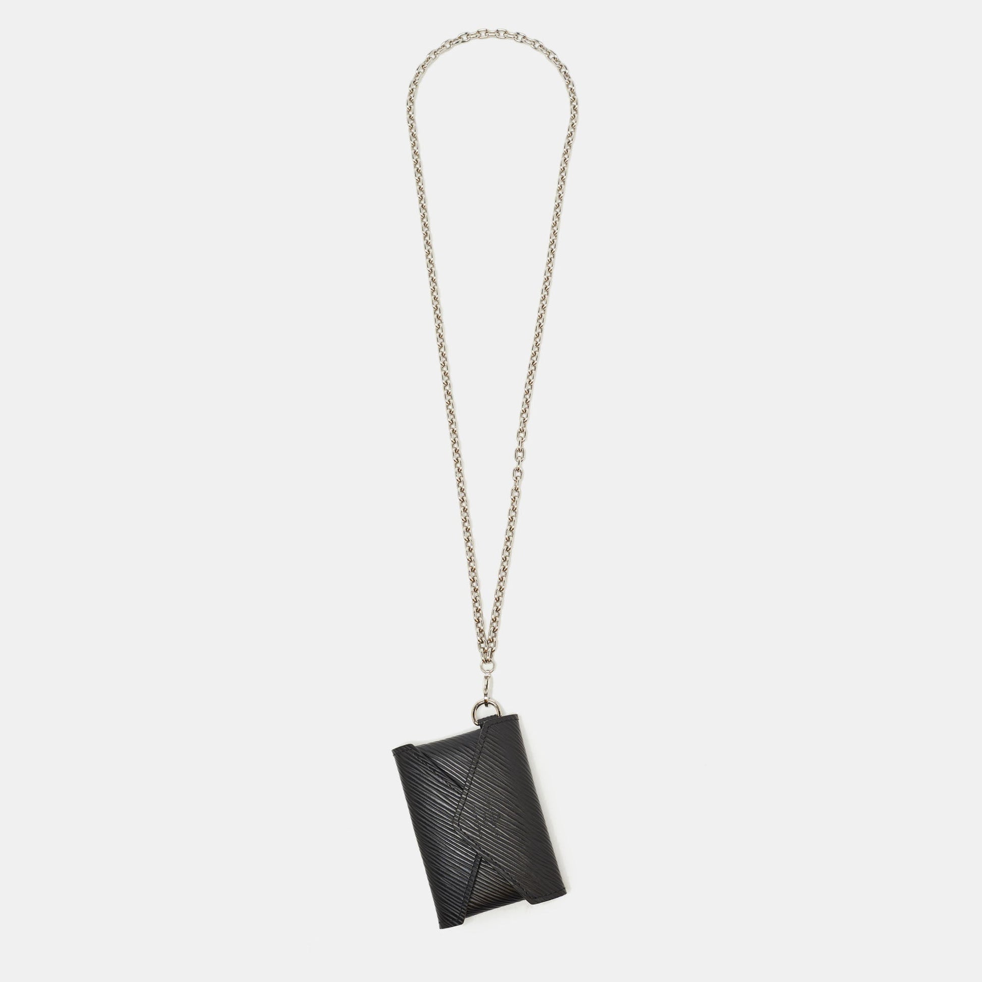 This Kirigami creation is a classic with a twist. It features an envelope like silhouette made from Epi leather and can be as a chain.