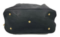 Pleated Black mahina leather exterior with perforated monogram design trimmed with gold hardware and double top handles.