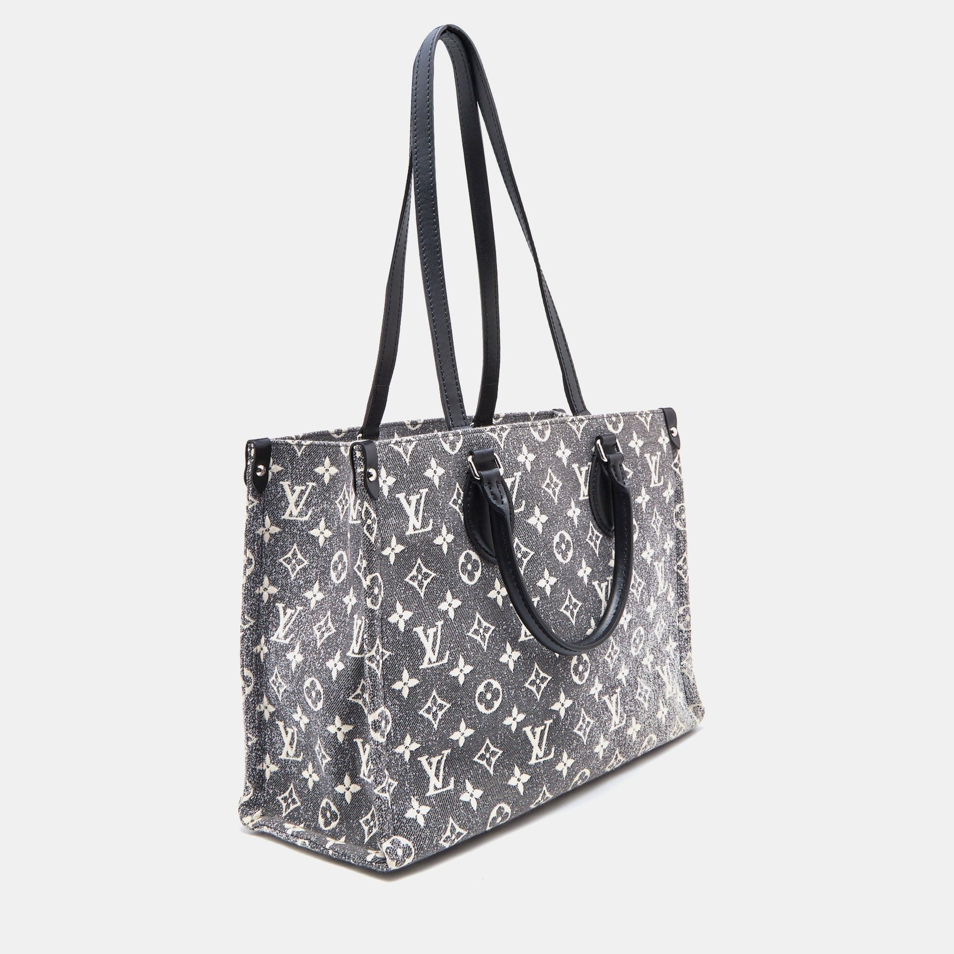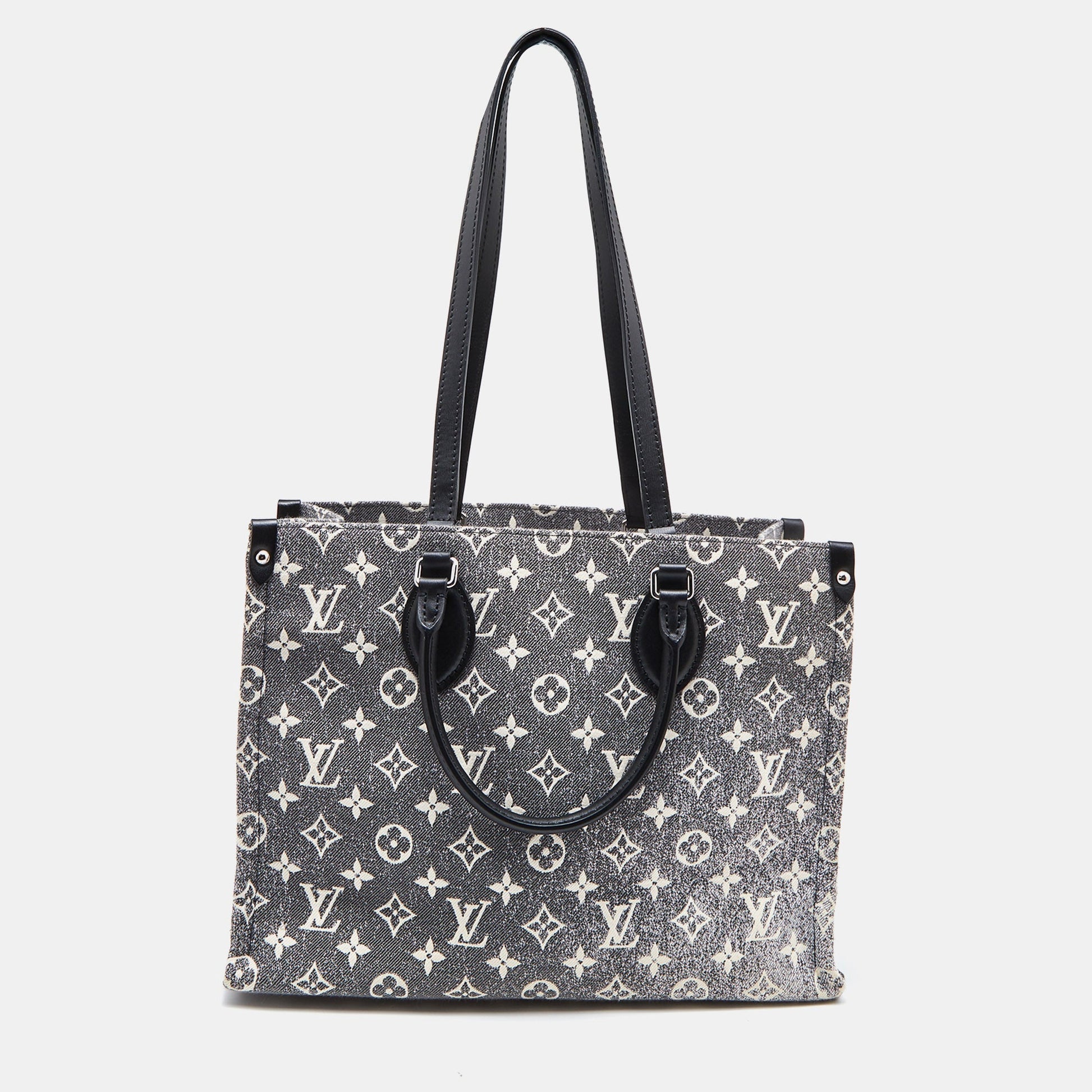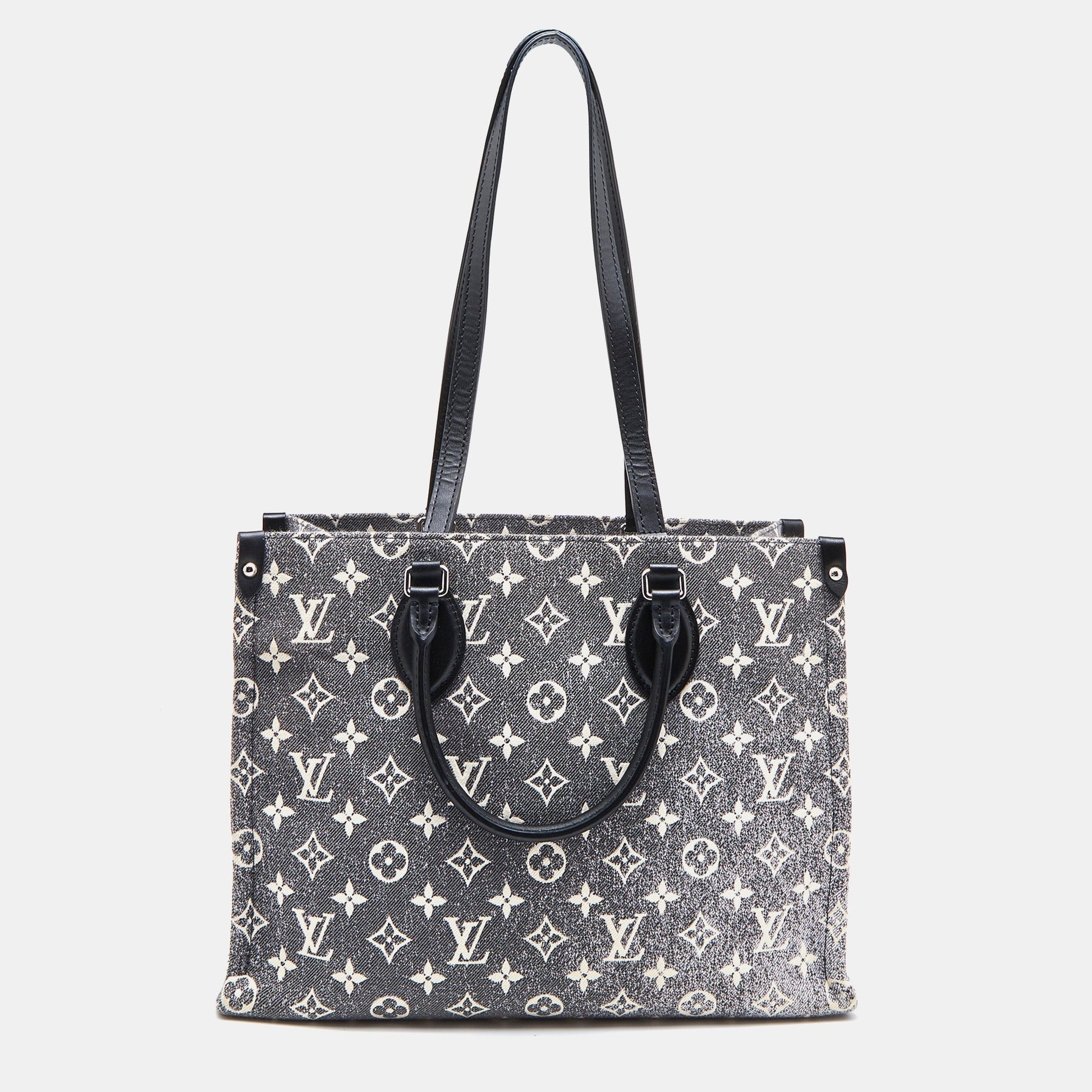 LOUIS VUITTON Black Monogram Denim and Leather OnTheGo MM Bag
