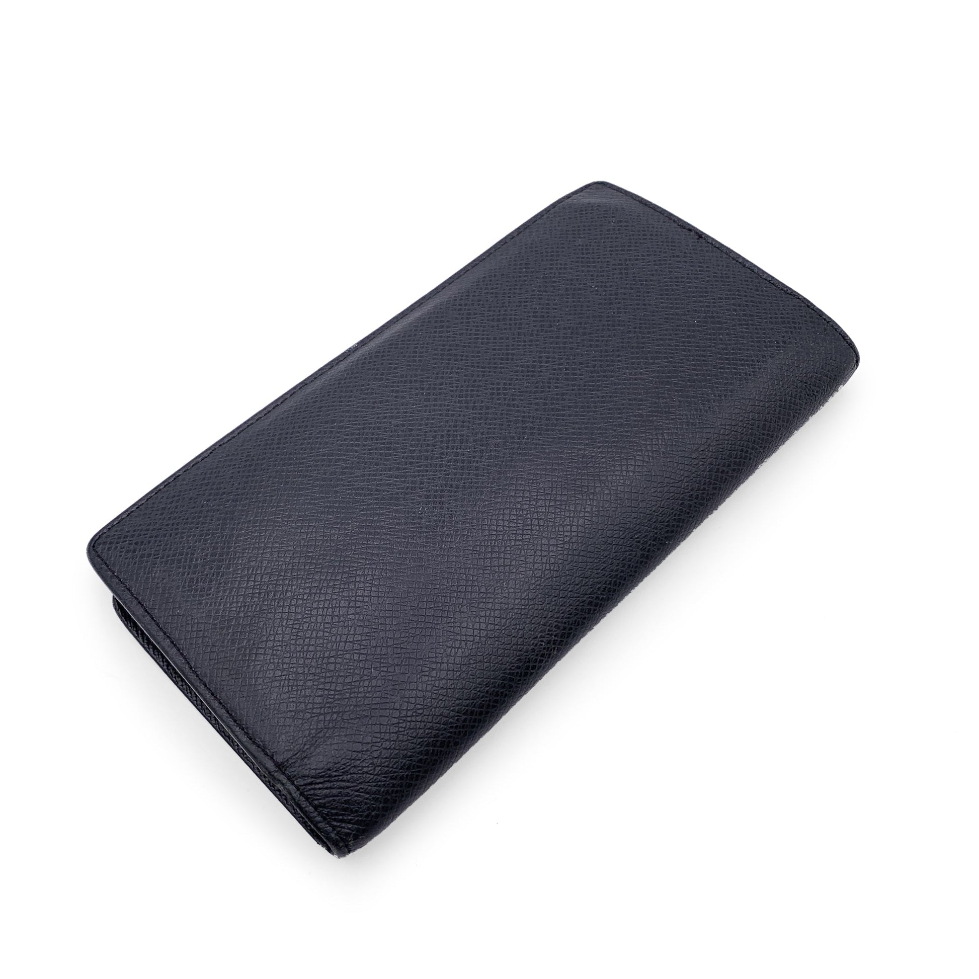 LOUIS VUITTON Black Taiga Leather Long Brazza Continental Wallet