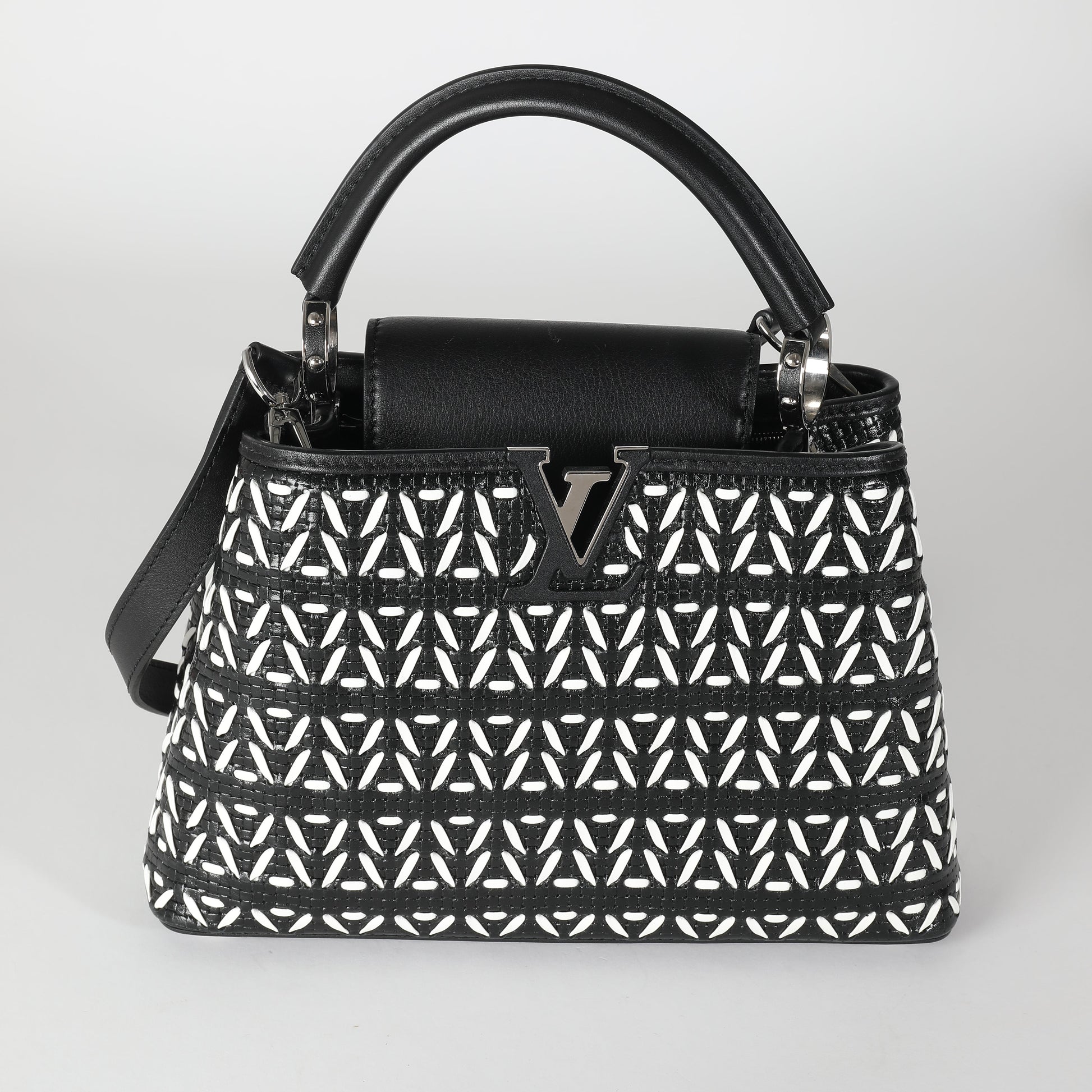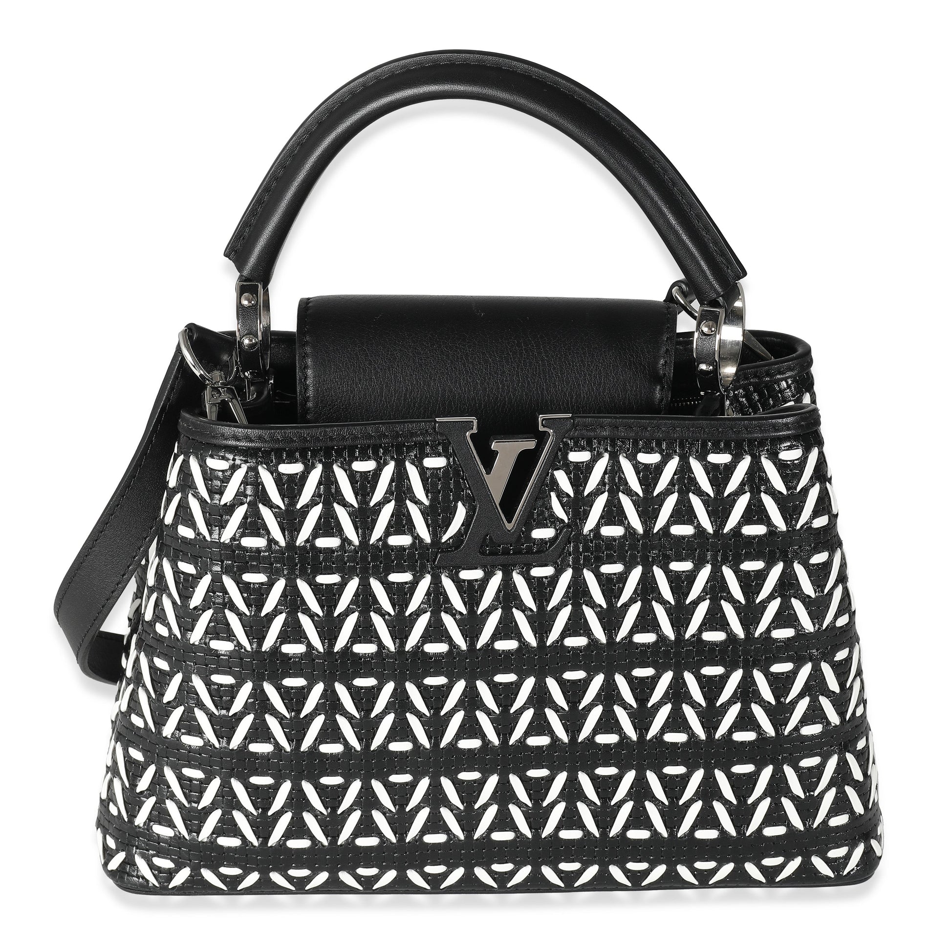 Listing Title: Louis Vuitton Black White Woven Calfskin Tressage Capucines BB