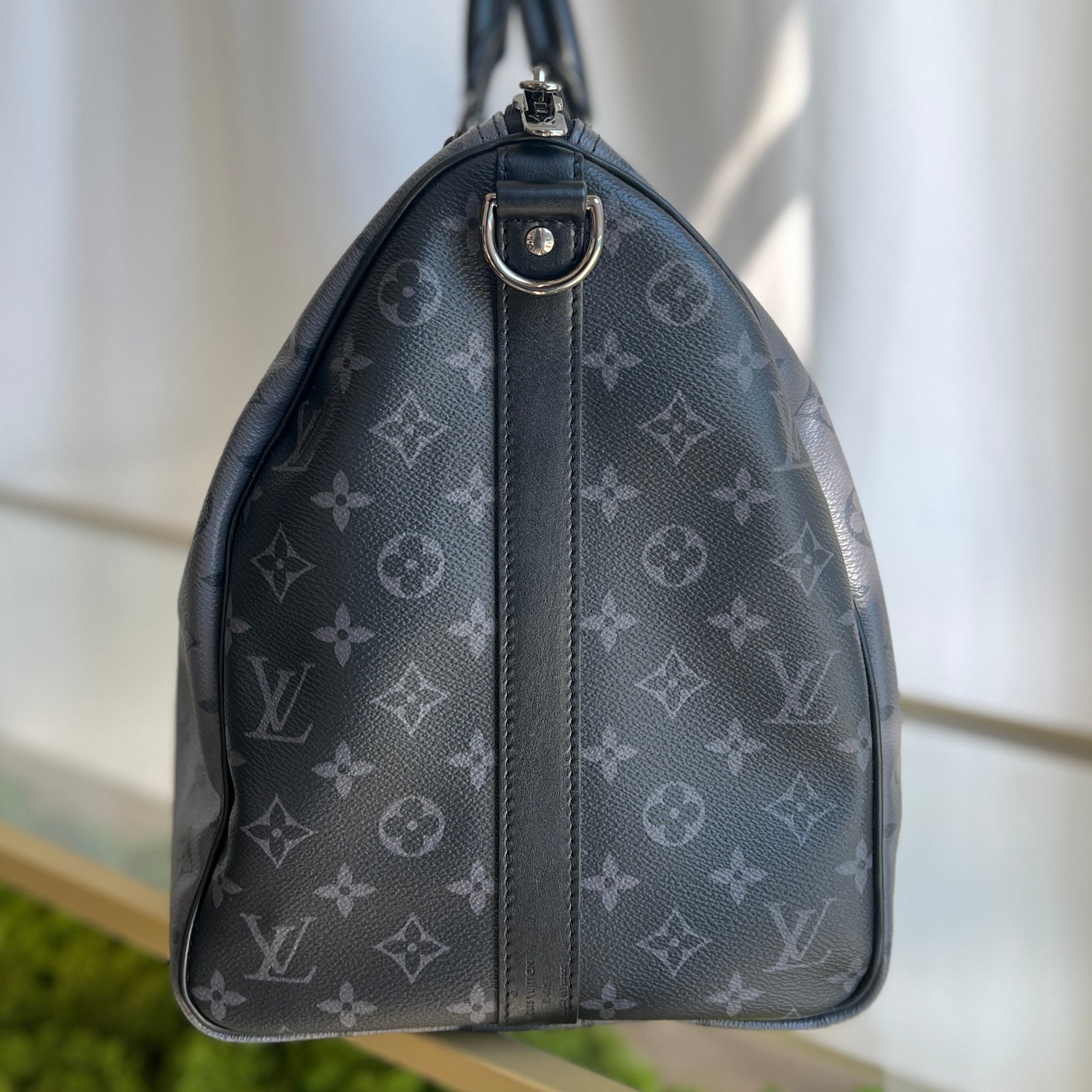 LOUIS VUITTON Monogram Eclipse Coated Canvas Keepall Bandouliere 50