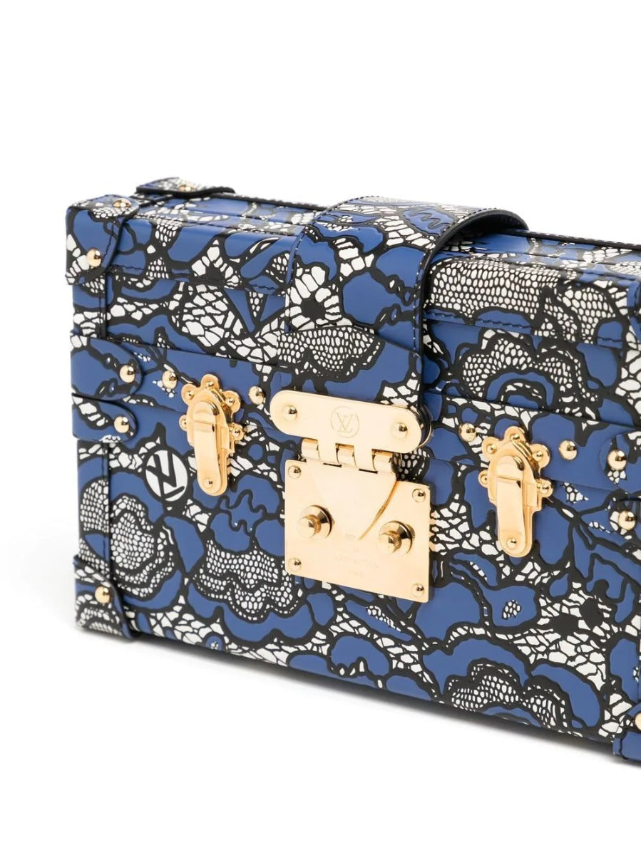 LOUIS VUITTON Blue Lace Floral Petite Malle Bag