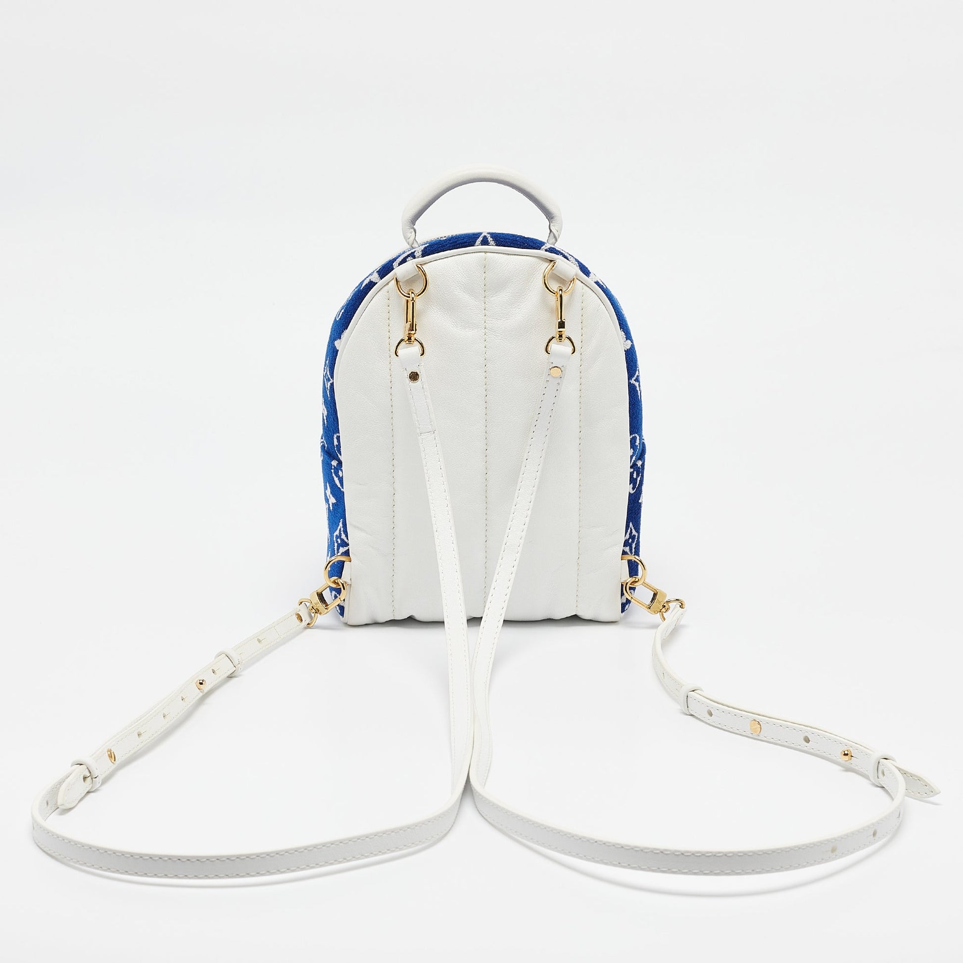 LOUIS VUITTON Blue/White Monogram Velvet and Leather Palm Springs Backpack