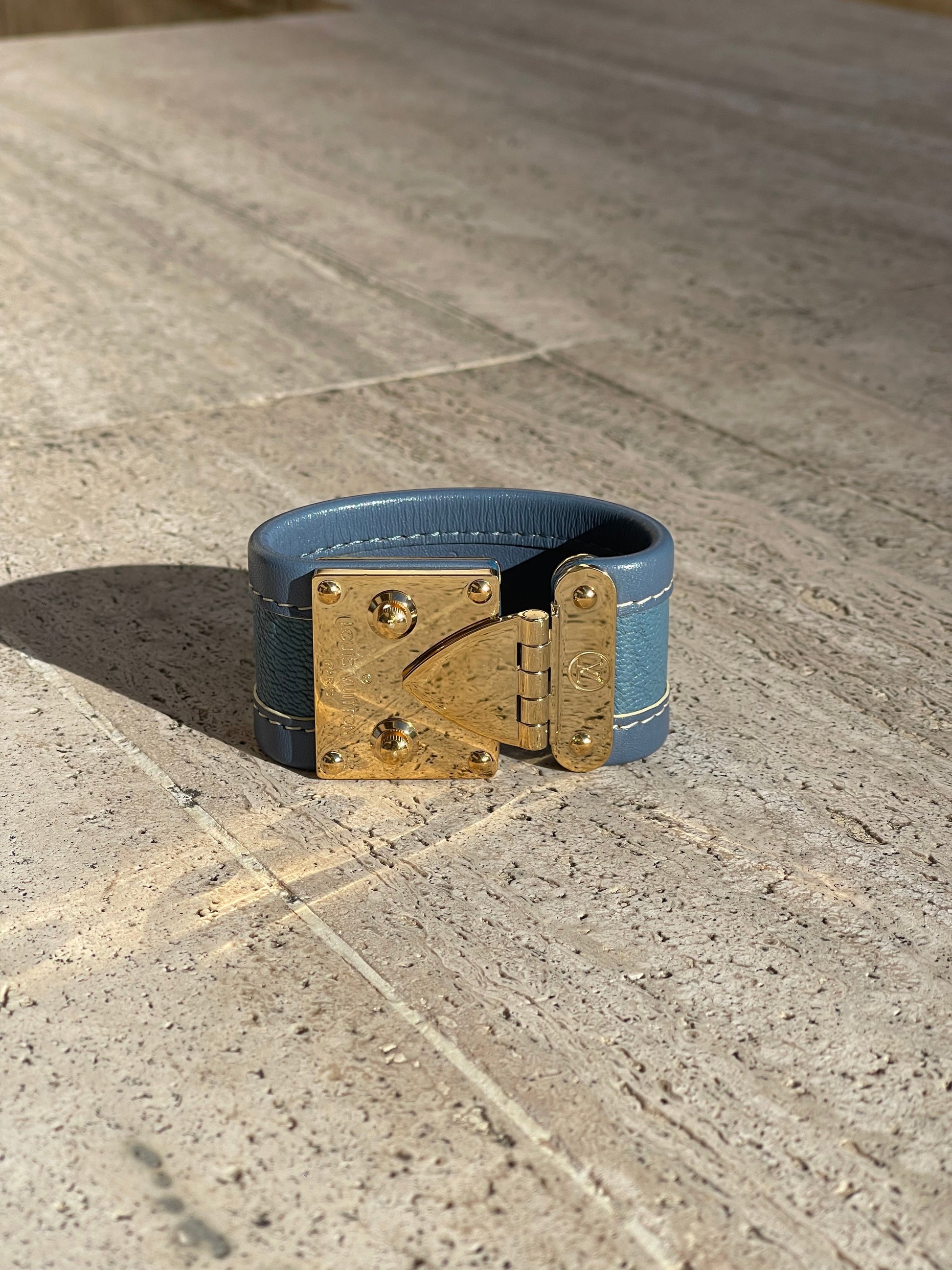 Louis Vuitton - Bracelet Cuir Suhali serrure bleu