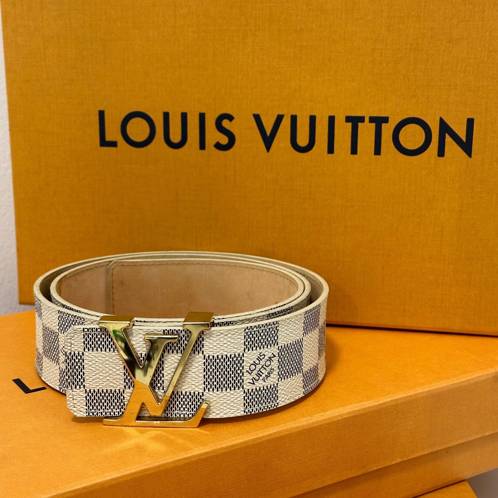 Ceinture en toile damier azur modèle iconic de la Maison.