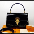 - Patent leather and Monogram canvas top handle