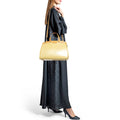 This Brea MM bag from the House of Louis Vuitton will definitely sway you away with its precise shape, style, and design. It is made from Citrine Monogram Vernis into a structured, neat silhouette. It flaunts gold toned fittings, dual top handles, and a fabric lined interior. This LV bag will certainly be your favorite in no time.