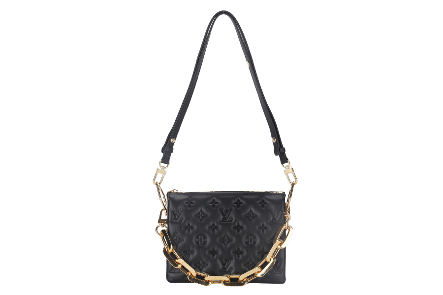 LOUIS VUITTON COUSSIN BB NOIR MONOGRAM EMBOSSED PUFFY LAMBSKIN (M21259) GOLD HARDWARE WITH CHAIN, STRAP, DUST COVER AND BOX