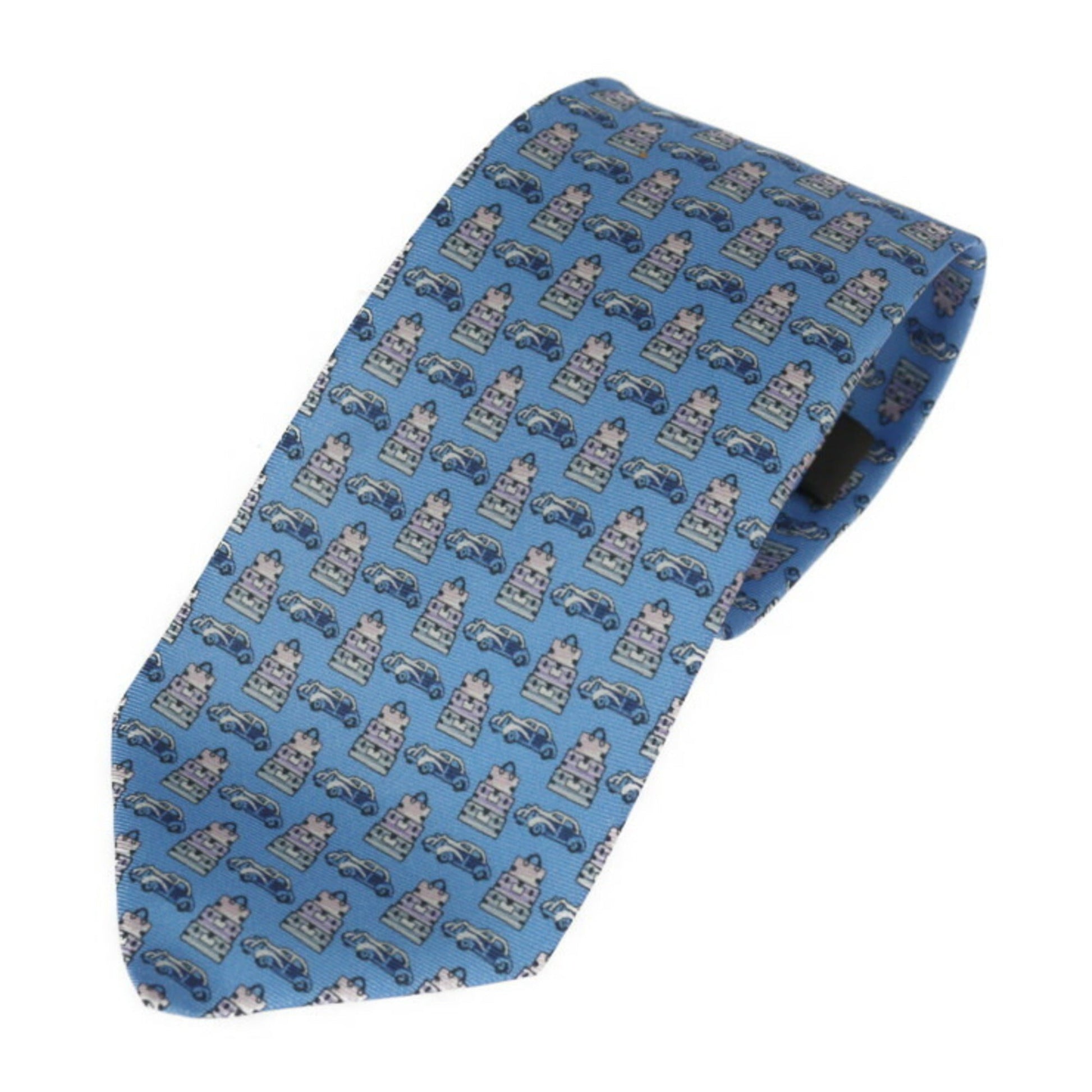Louis Vuitton Cravat Globetrot Cars Tie M78558 Silk 100% Light Blue System Trunk x Car Pattern