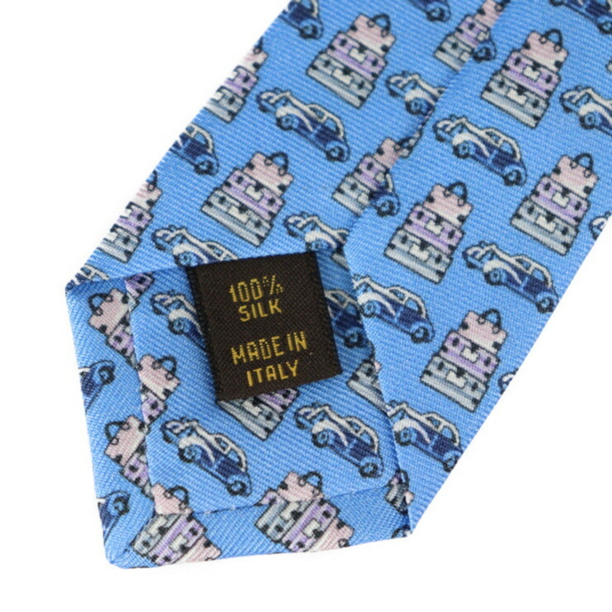 LOUIS VUITTON Cravat Globetrot Cars Tie M78558 Silk 100% Light Blue System Trunk x Car Pattern