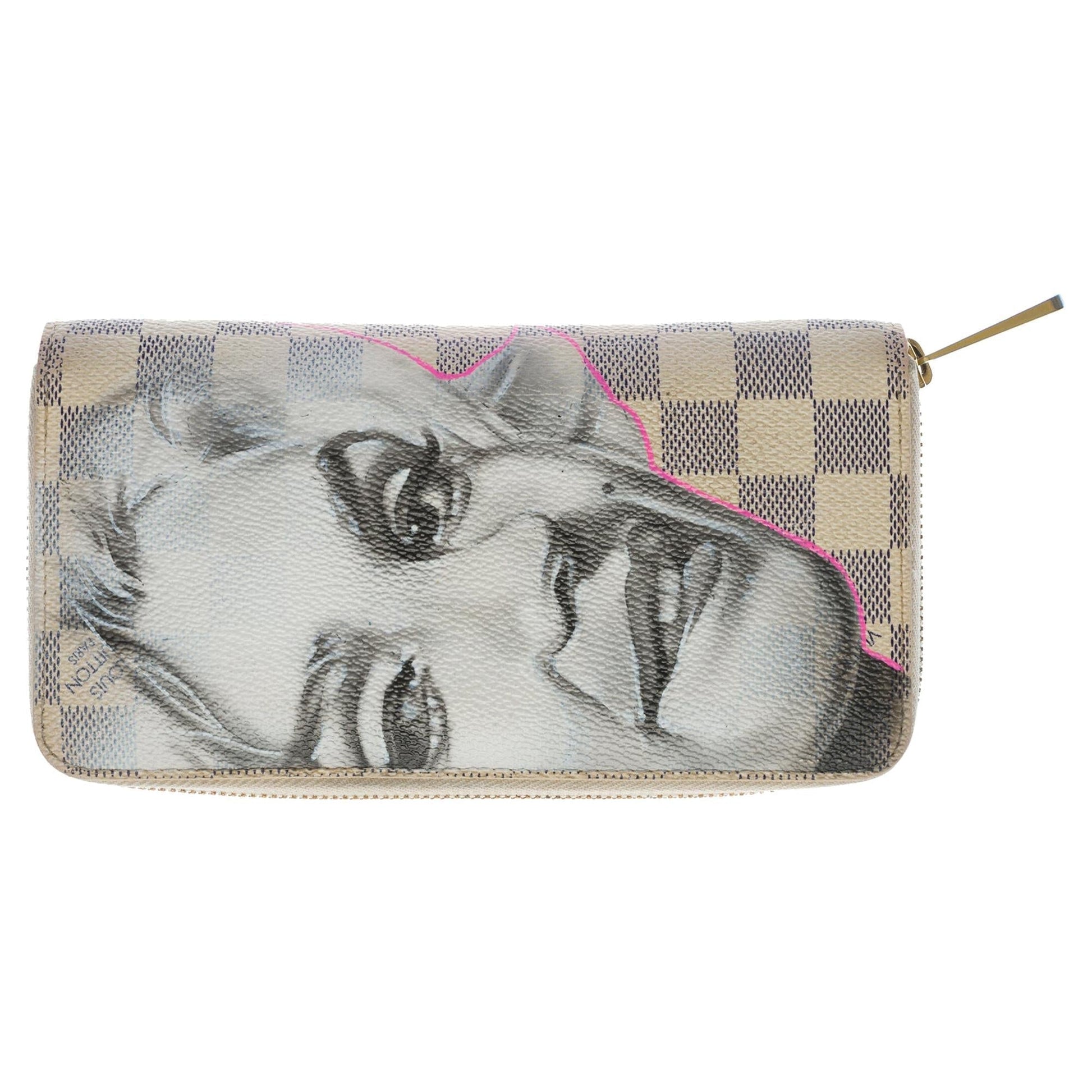 LOUIS VUITTON Customized "Marilyn Monroe" Zippy wallet in damier azur canvas