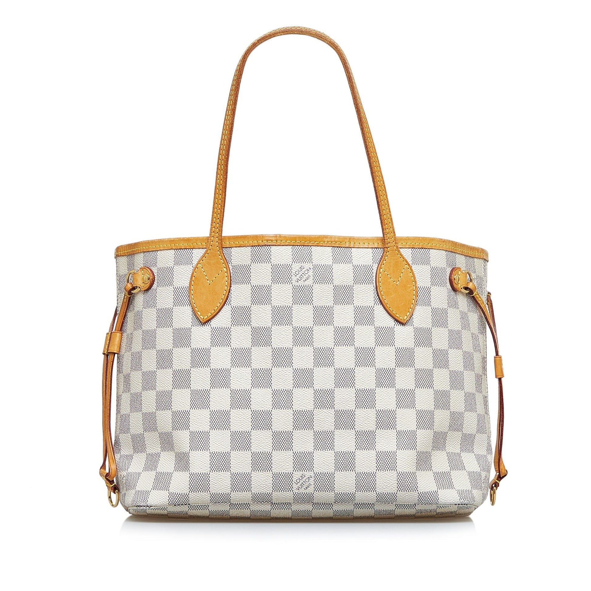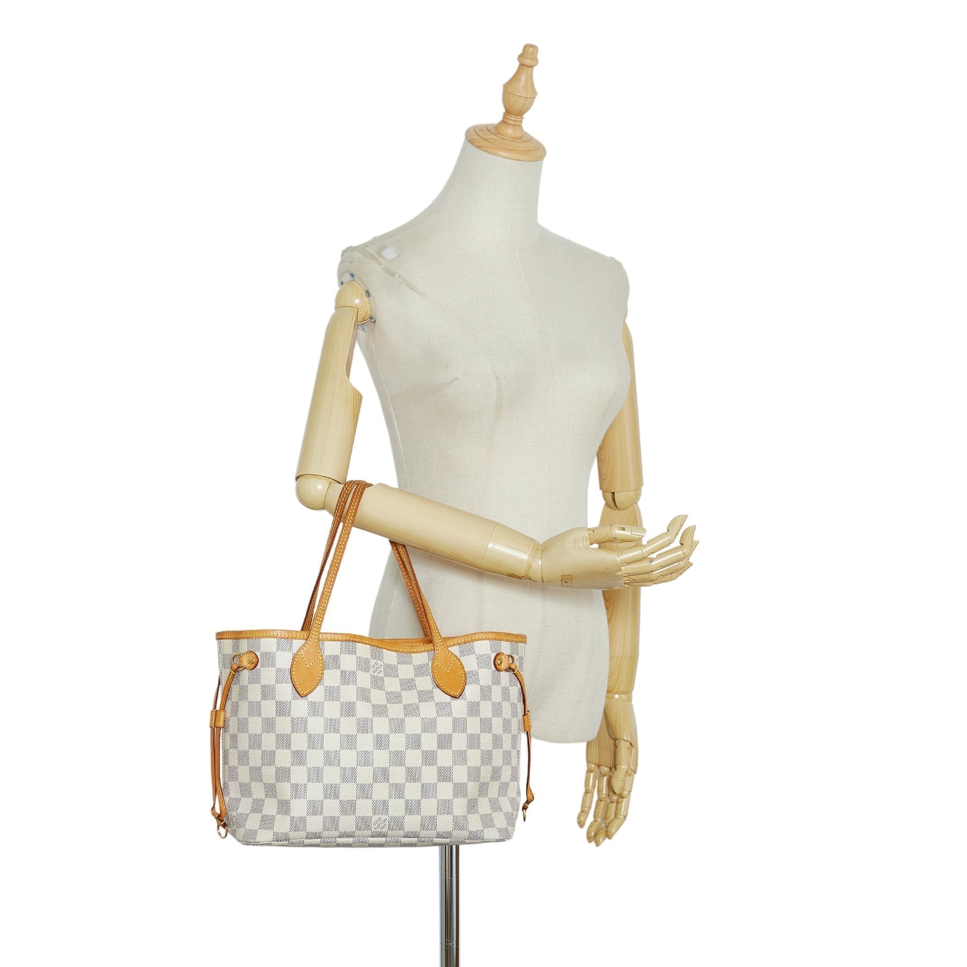The Louis Vuitton Damier Azur Neverfull PM White is a stylish bag crafted from Damier Ebene canvas and features a soft and lightweight design.