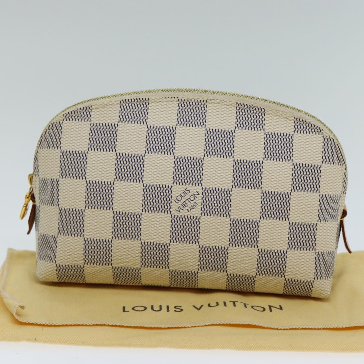 LOUIS VUITTON Damier Azur Pochette Cosmetic PM Pouch N60024 LV Auth 77934