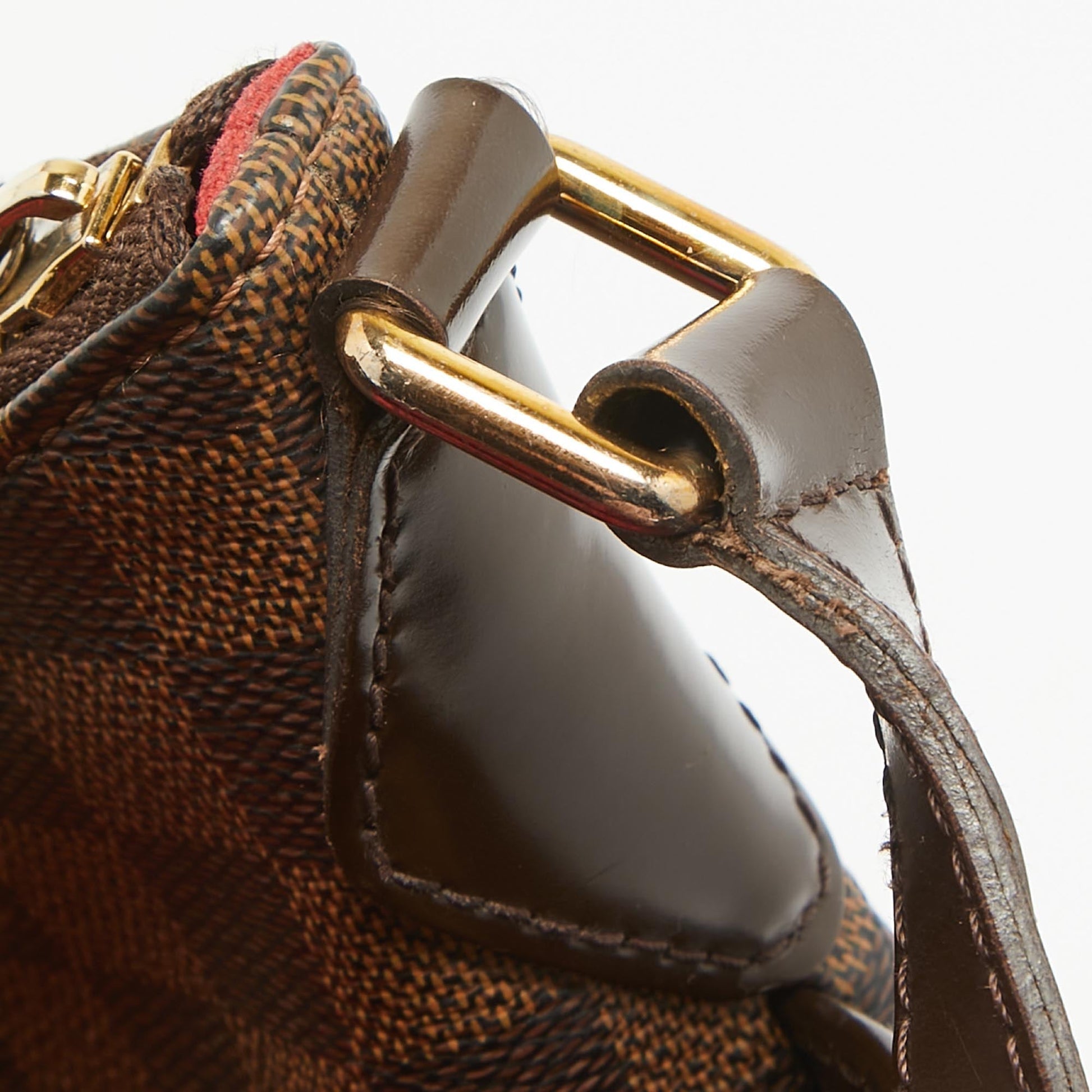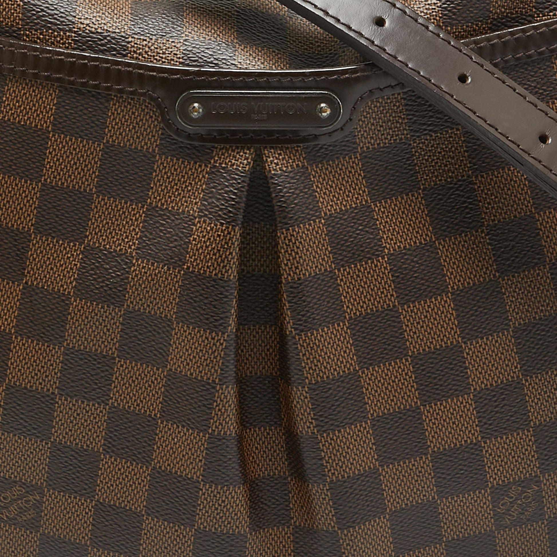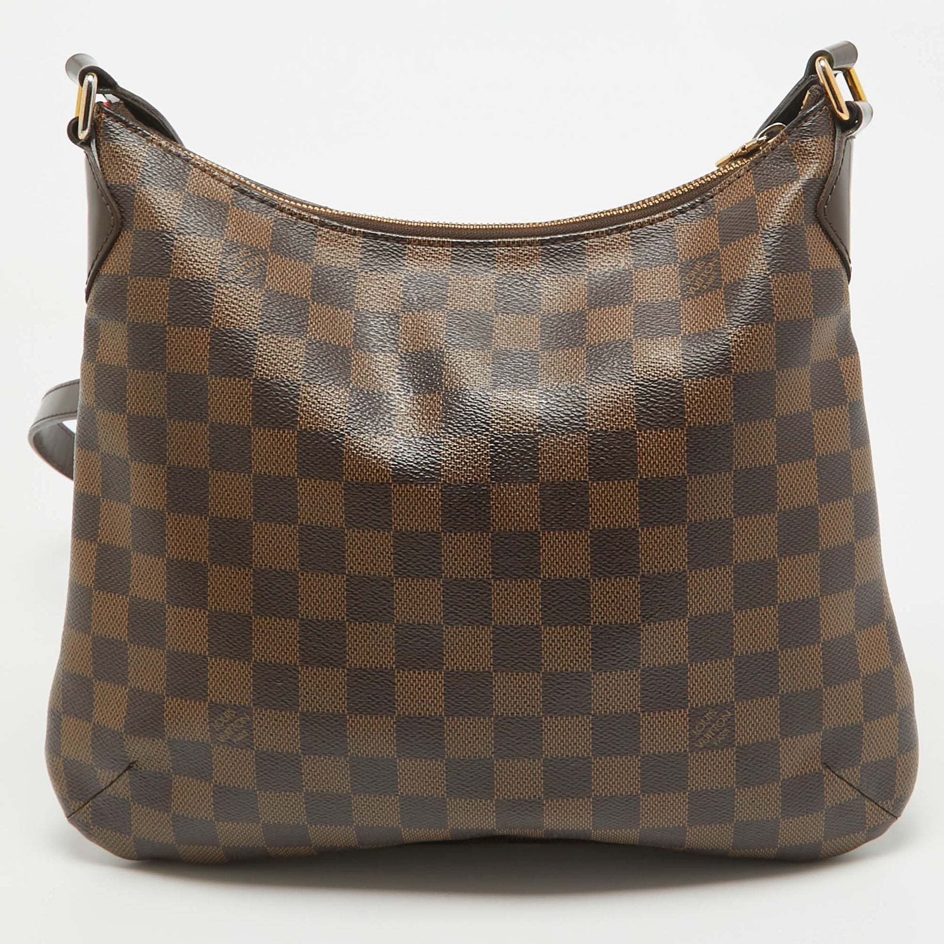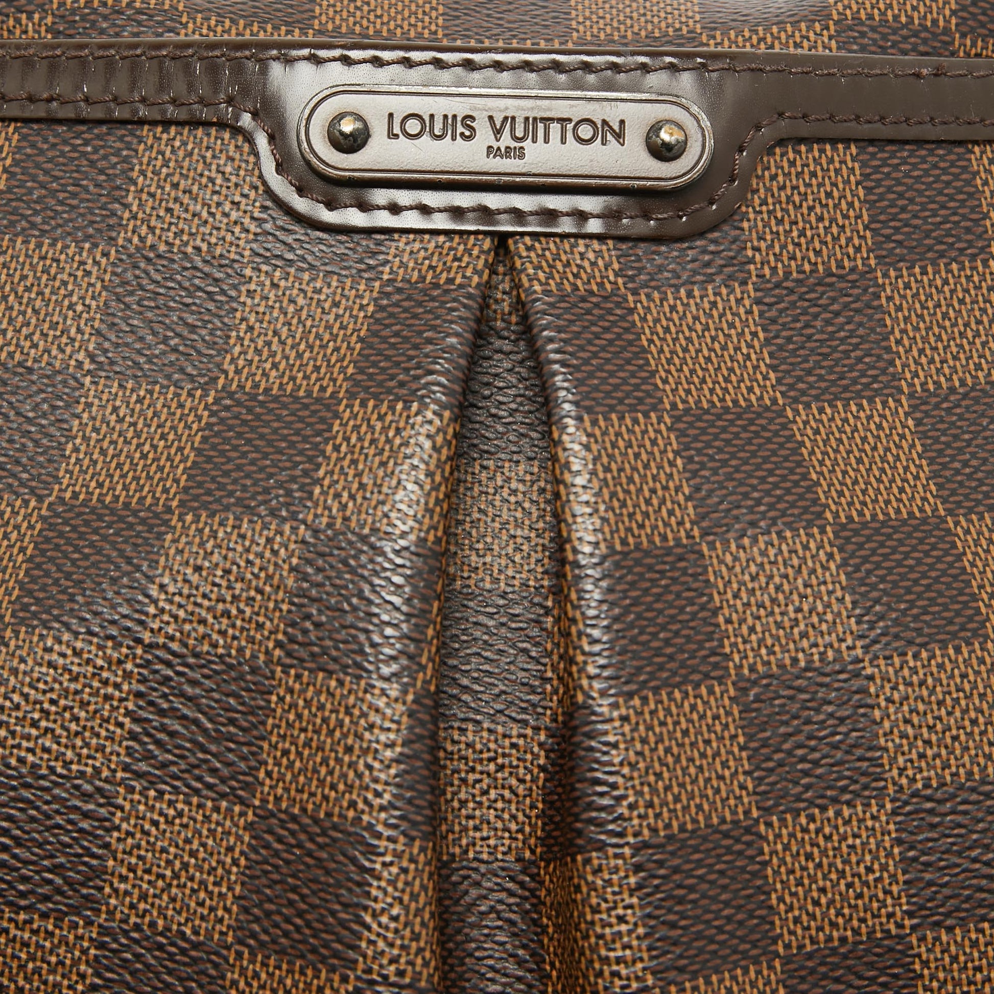 Crafted from Damier Ebene canvas and leather, this Bloomsbury PM from Louis Vuitton is sure to elevate your style. It features a subtle pleat with a Louis Vuitton plaque at the front and a canvas interior secured by a zipper. It is complete with an adjustable shoulder strap.