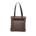 This tote bag features a damier ebene canvas, flat leather straps, open top, and interior slip pockets. Comes with box and dust bag.