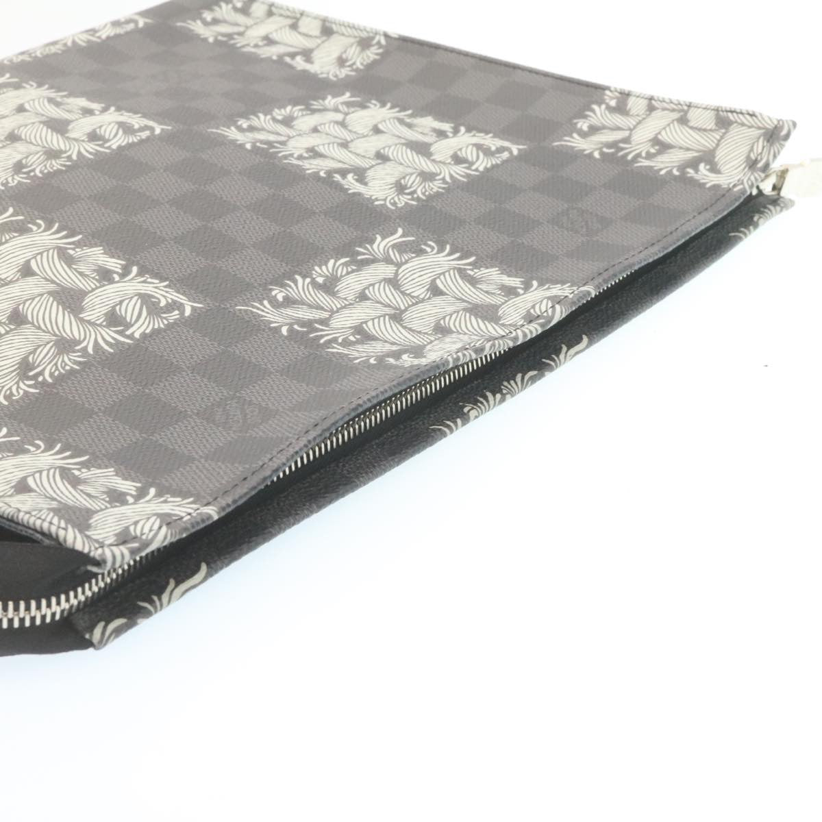 LOUIS VUITTON Damier Graphite Pochette Voyage Clutch Bag N61234 LV Auth 27628A