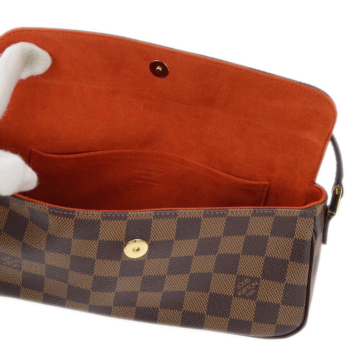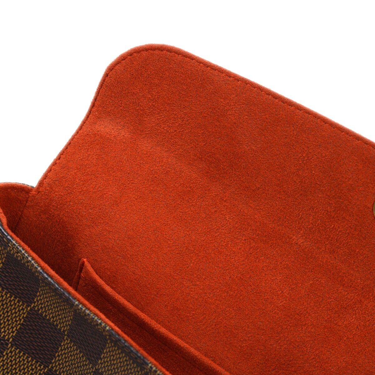 Elevate your style with the Louis Vuitton Damier Recoleta Handbag. Crafted from the iconic Damier Ebene canvas, this sophisticated bag features a spacious interior with a zippered pocket for organization. The bold red microfiber lining adds a pop of color, while the adjustable shoulder strap offers versatility in carrying. Perfect for day-to-night transitions, this timeless piece effortlessly combines luxury and practicality, making it a must-have accessory for the modern fashionista.