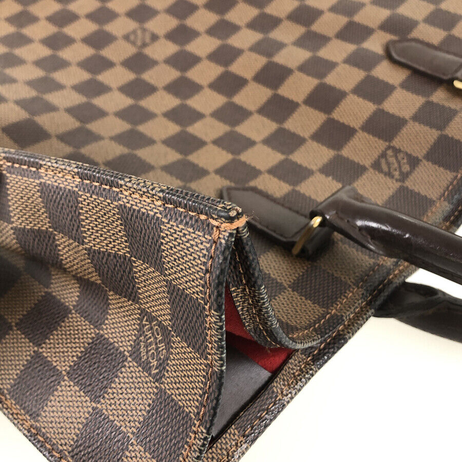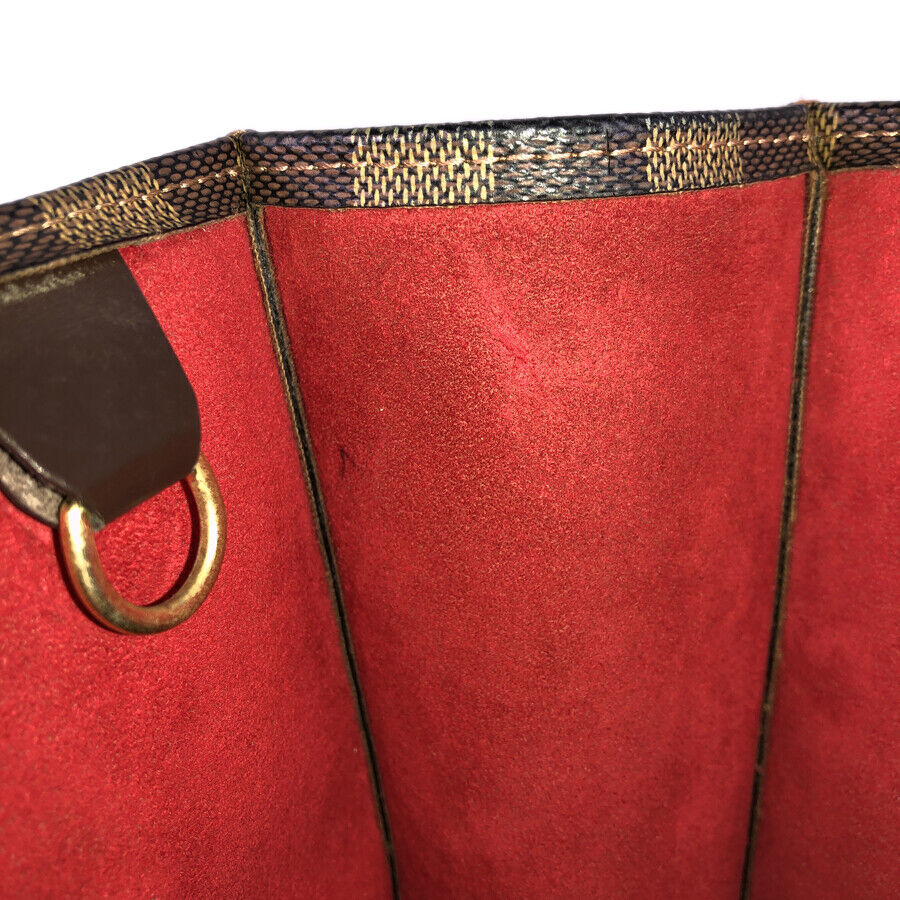 Elevate your style with the iconic Louis Vuitton Damier Sac Pla Tote Bag. Crafted from the finest Damier Ebene canvas, this luxurious tote features smooth leather trim and polished gold-tone hardware. The spacious interior is lined with red textile and includes a zip pocket for your essentials. With its timeless design and versatile silhouette, this bag is perfect for both work and weekend outings. Make a statement with the Louis Vuitton Damier Sac Pla Tote Bag and exude sophistication wherever you go.