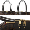 Introducing the Louis Vuitton Damier Westminster GM Brown Tote Bag, a timeless and versatile piece for the modern fashionista. Crafted from the iconic Damier Ebene canvas, this bag exudes sophistication and luxury. The spacious interior is lined with red textile and features multiple pockets for effortless organization on-the-go.