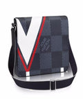 Strong graphics and nautical accents mark this edition of the District messenger, created for the 2017 America’s Cup Collection. A sporty reinterpretation of the historical V Gaston cuts boldly across the oversized new Damier Latitude pattern, for a modern, masculine look.