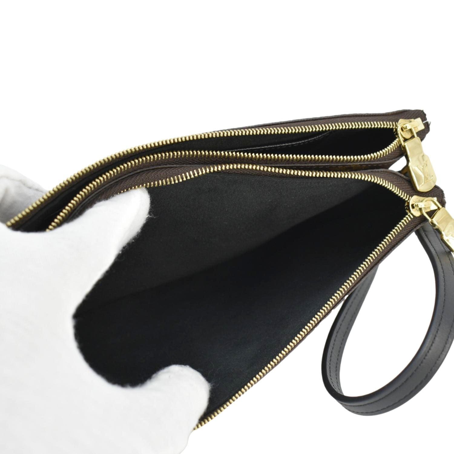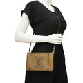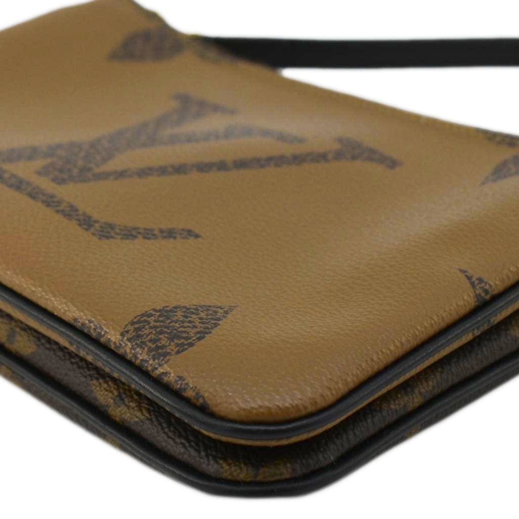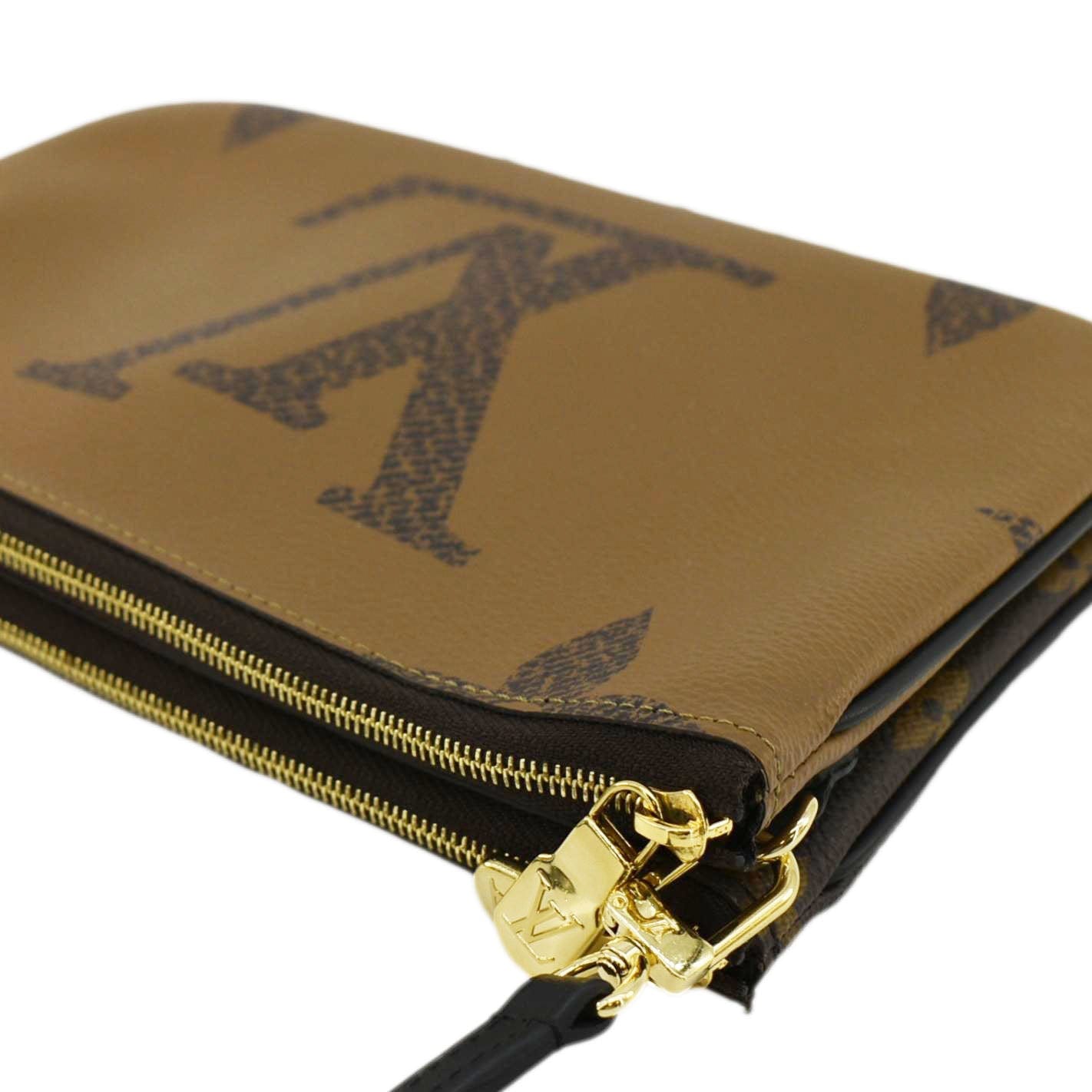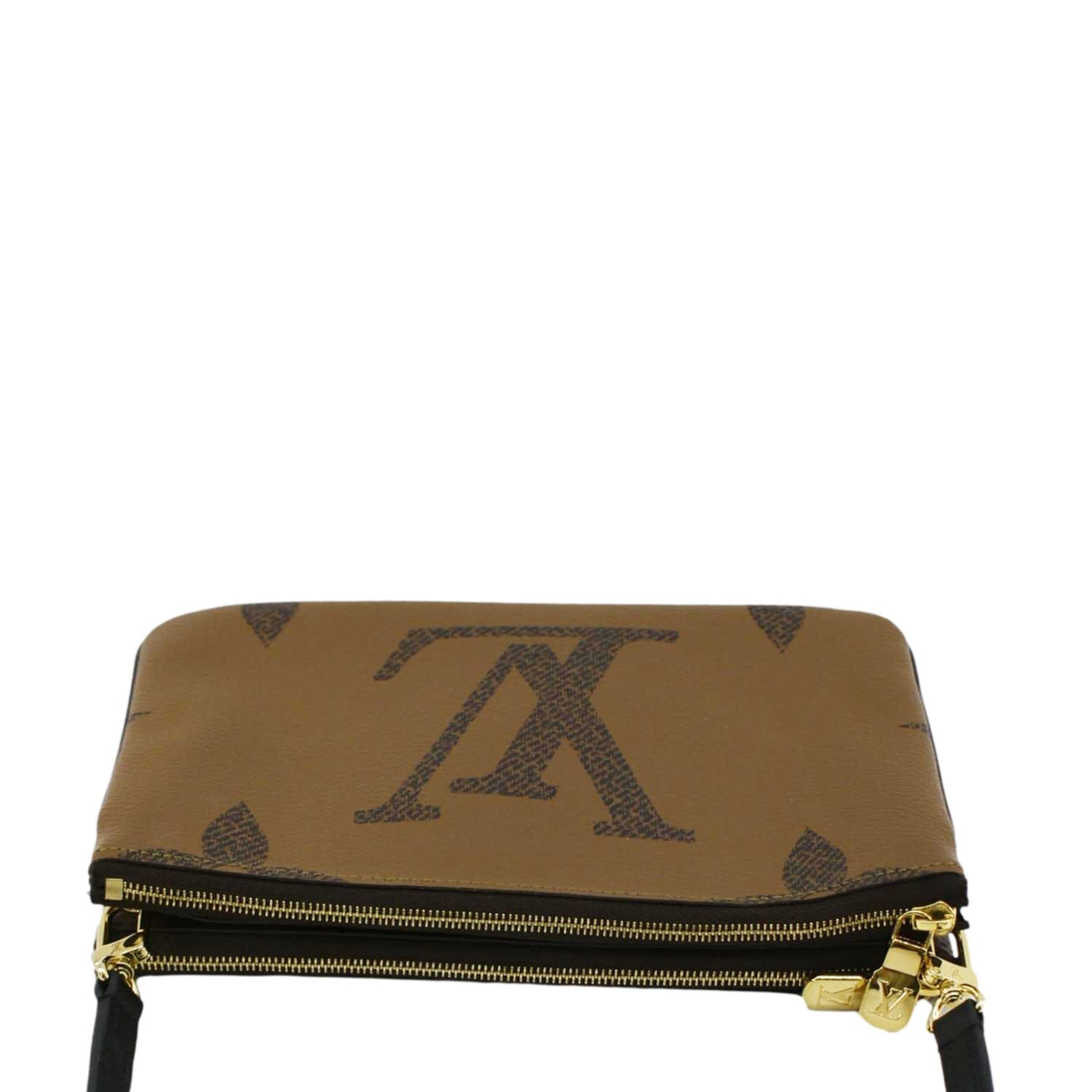LOUIS VUITTON Double Zip Pochette Giant Monogram Reverse Canvas Crossbody Bag Brown