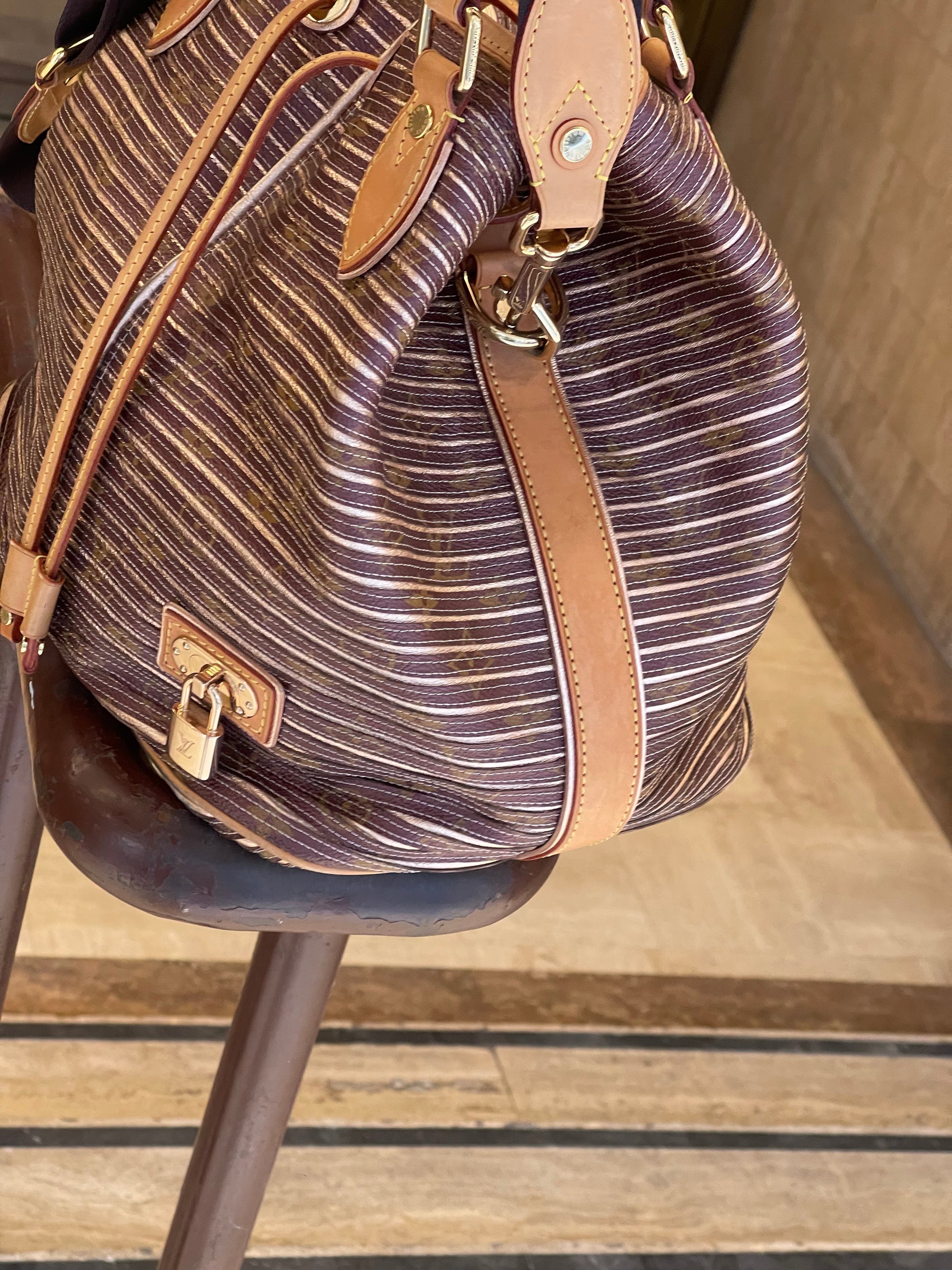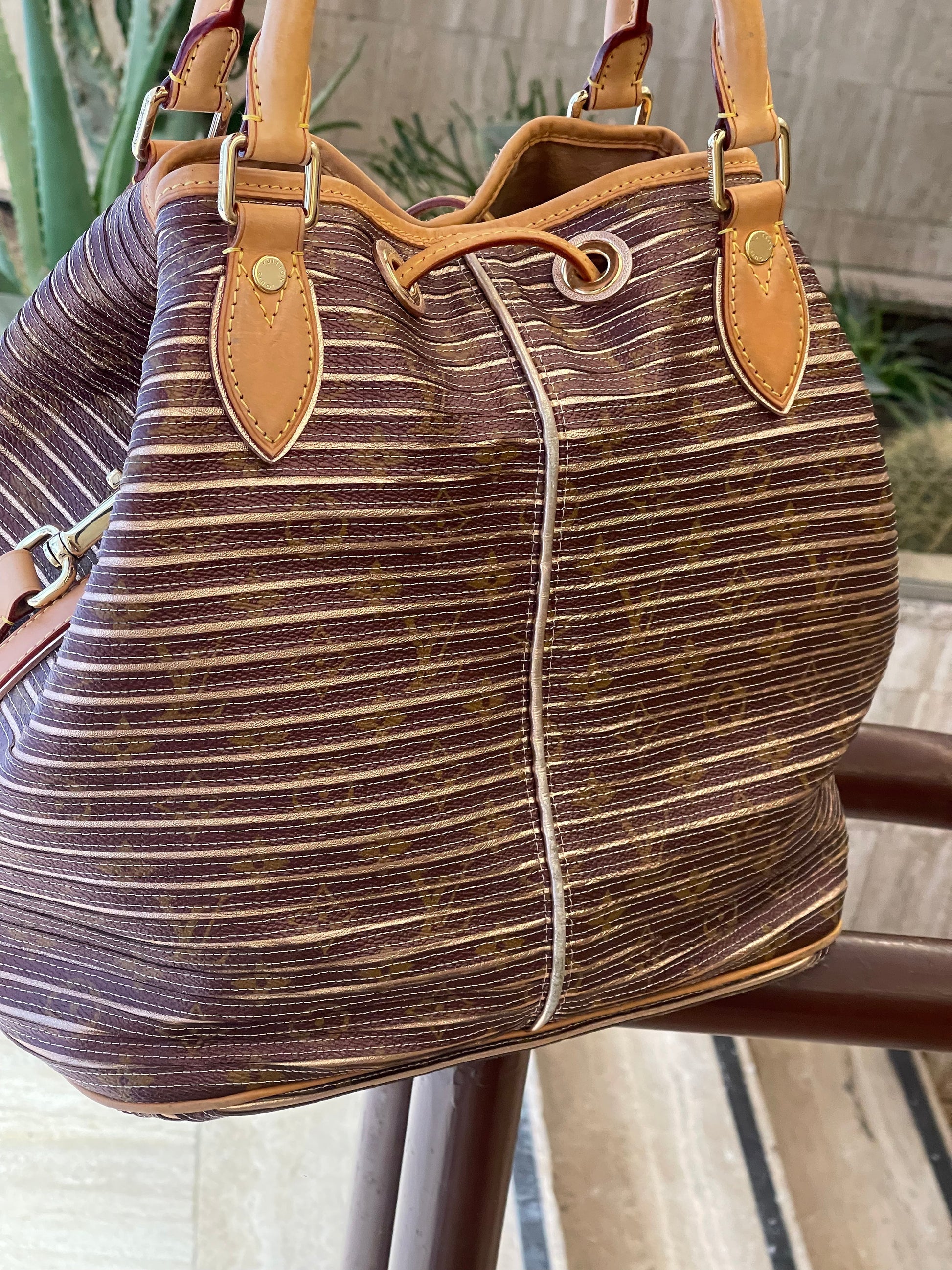 Le Eden Neo comporte un corps Limited Edition Monogram Canvas bordeaux aux liserés dorés, poignées roulées, une fermeture supérieure à cordon, et une poche intérieure zippée. Agrémenté d’une large bandoulière en toile et d’un accastillage en métal doré, il est une pièce unique qui illluminera votre tenue.