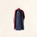 Characteristics: This piece is made of navy blue monogram empreinte leather, embellished with golden color metallic pieces and red leather trim. For easy cary, it has an adjustable and removable cross-body strap, and an elegant short handle for dressier events. It was one exterior zipped pocket on the back, and three inside compartments in red.
