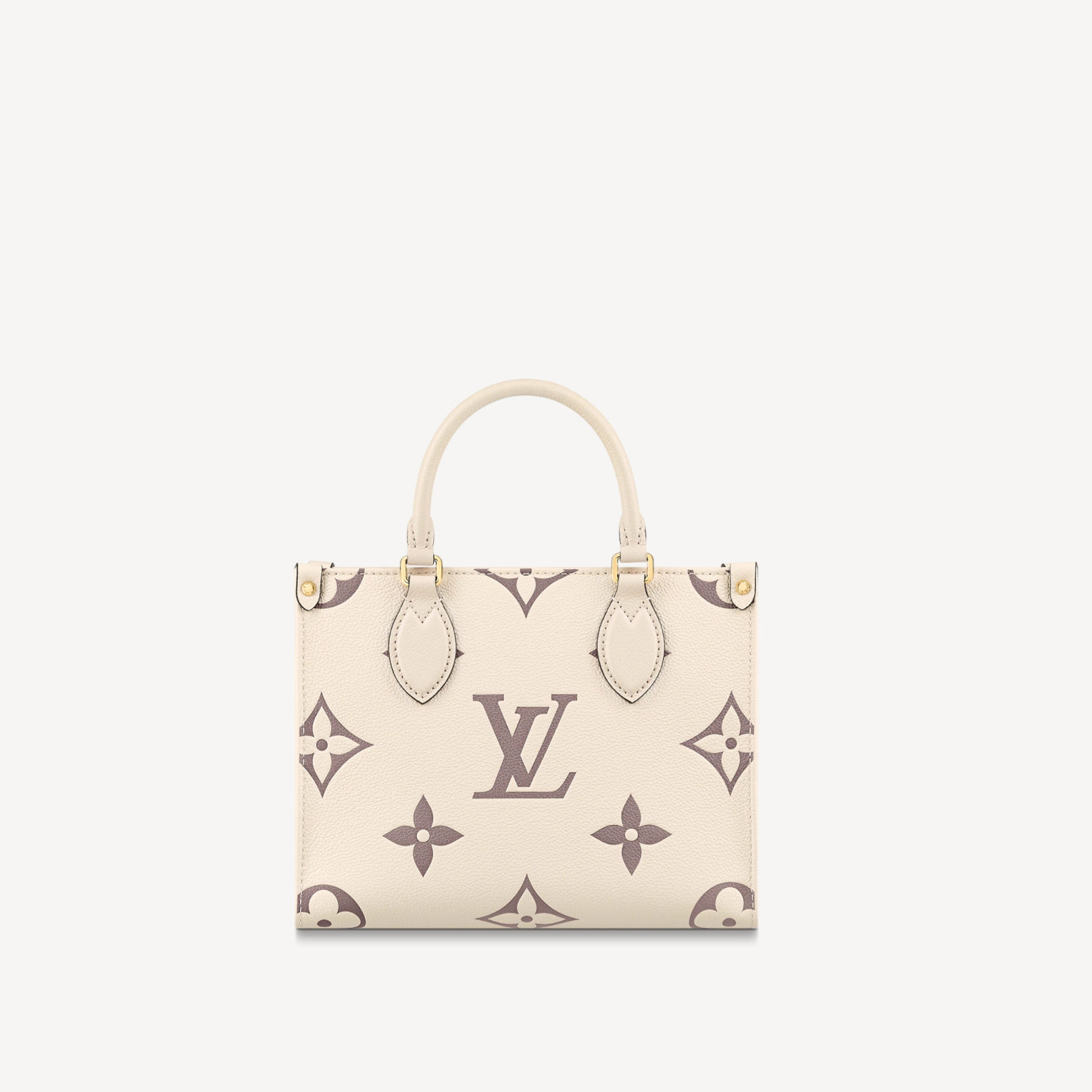 Characteristics: Inspired by Louis Vuitton’s famous Sac Plat from 1968, the OnTheGo PM is a small-sized tote bag with two sets of handles, long and short, for hand and shoulder carry. Fashioned from supple grained cowhide leather, it features a Monogram pattern, printed on and embossed into the leather. This new smaller version Onthego fits essentials such as an iPad Mini.
