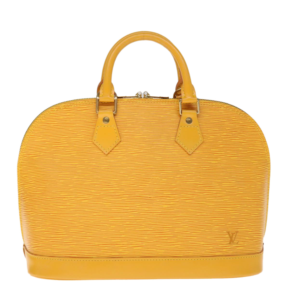 Elevate your style with the iconic Louis Vuitton Epi Alma Hand Bag in Tassili Yellow. Crafted from luxurious Epi leather, this LV piece exudes sophistication and elegance. The structured silhouette and spacious interior make it perfect for everyday essentials, while the vibrant yellow hue adds a pop of color to any outfit. Carry it by the top handles or use the detachable shoulder strap for versatile styling options. Make a bold statement with this timeless designer handbag.