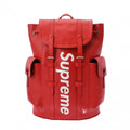 Introducing the Louis Vuitton Epi Christopher PM Supreme Collaboration in striking red. This limited-edition piece combines LV's iconic Epi leather with Supreme's bold aesthetics. The Christopher PM offers a spacious interior and adjustable straps for versatility. Elevate your style with this exclusive collaboration, perfect for fashion enthusiasts and collectors alike. Don't miss out on this unique fusion of luxury and streetwear.