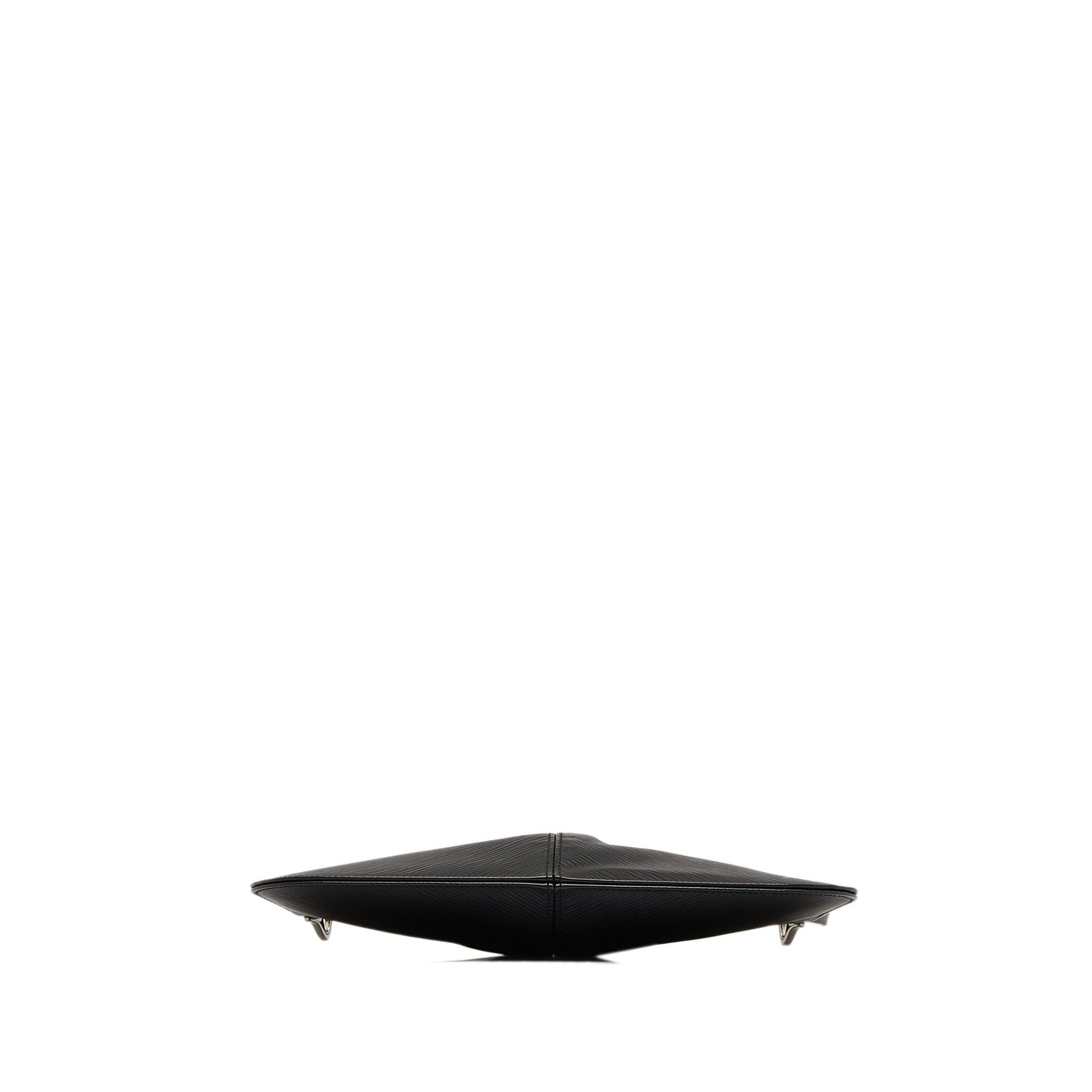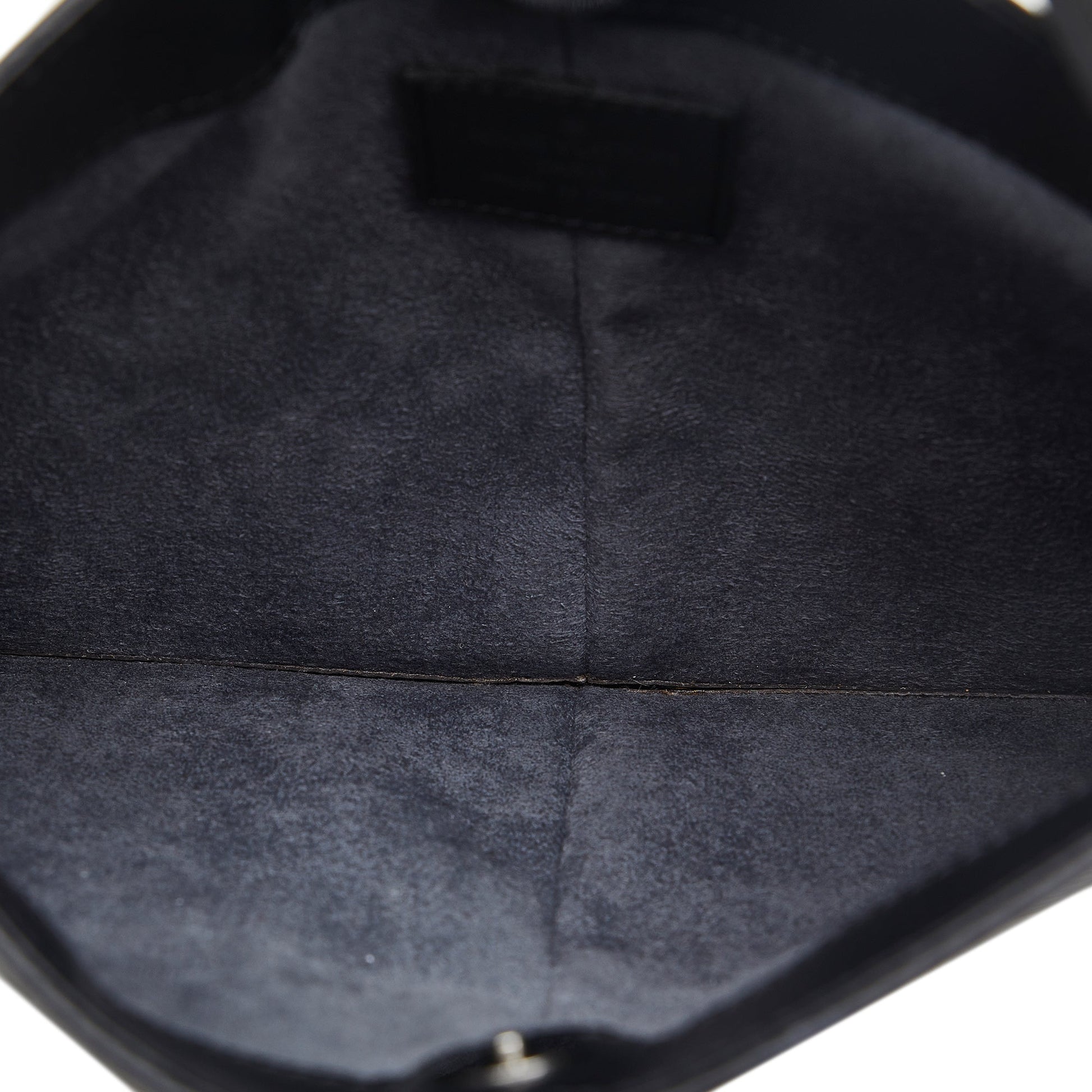 The Pochette Demi Lune features an epi leather body, a flat leather strap, and a top magnetic closure.