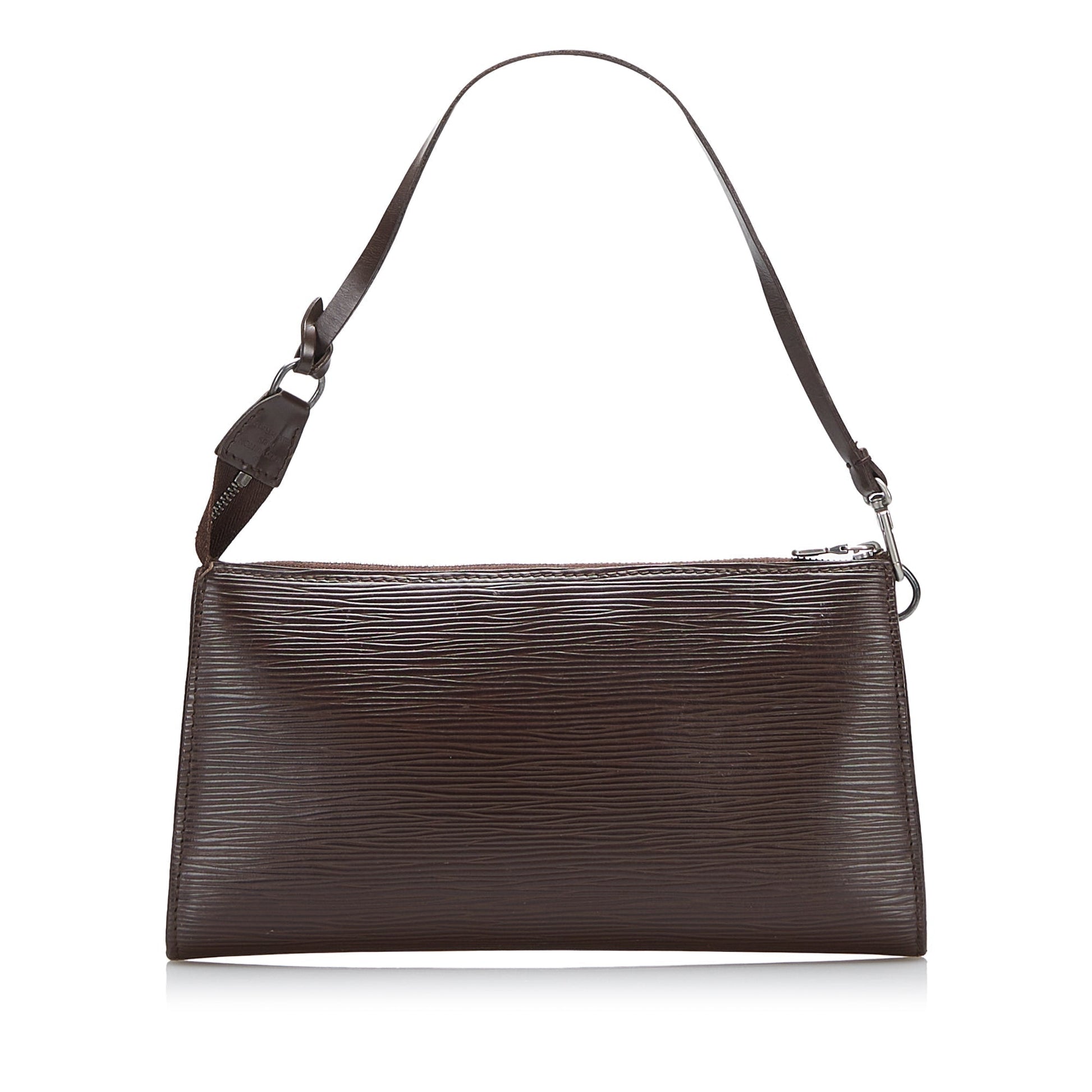 This stylish pochette is finely crafted of Louis Vuitton signature textured epi leather in dark brown.