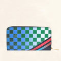 Characteristics: This wallet is crafted of a mixture of Louis Vuitton signature textured epi leather, damier and smooth leather. This wallet features a green and blue checked print along the bottom and back of the bag with smooth white and red leather intermixed with black epi leather on the front. A polished gold zipper wraps three sides and opens to a partitioned leather interior with a zipper pocket, slot pocket and card slots.