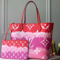 Inspired by the ancient Japanese technique of knotting and folding fabric before dyeing it, the LV Escale Collection brings a touch of summer to the Neverfull MM tote in a Tie-Dye Monogram canvas. Tighten the laces and this versatile tote bag becomes a smaller, stylish city bag.