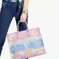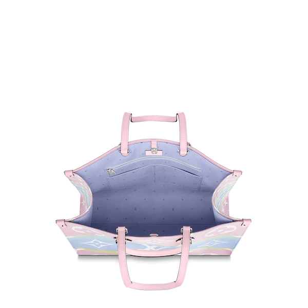 Inspired by the ancient Japanese Shibori technique of knotting and folding the fabric before dyeing it, the LV Escale Collection brings a fresh colorful beach feel to the Onthego GM tote bag for Summer 2020. Large and easy to carry with its shoulder straps or top handles, this large tote is a perfect everyday bag.