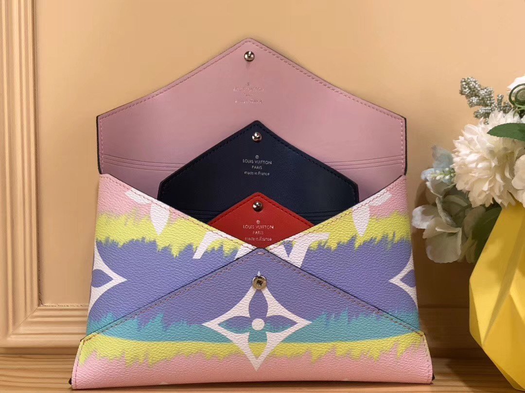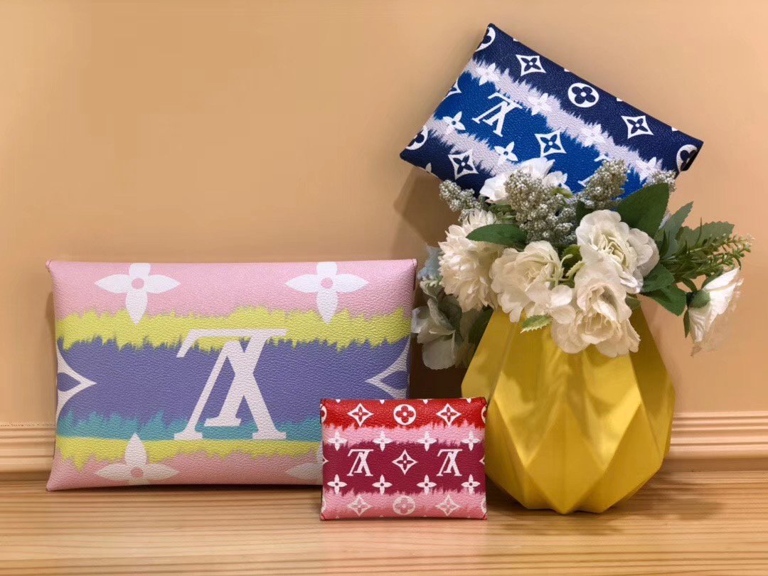 For Summer 2020, the Pochette Kirigami comes in a special edition belonging to the LV Escale collection of accessories and leather goods. The three envelope-style pouches in Monogram canvas are printed with a tie-dye effect in summer shades. The largest pouch will hold a tablet, the medium one a passport, and the small ones.