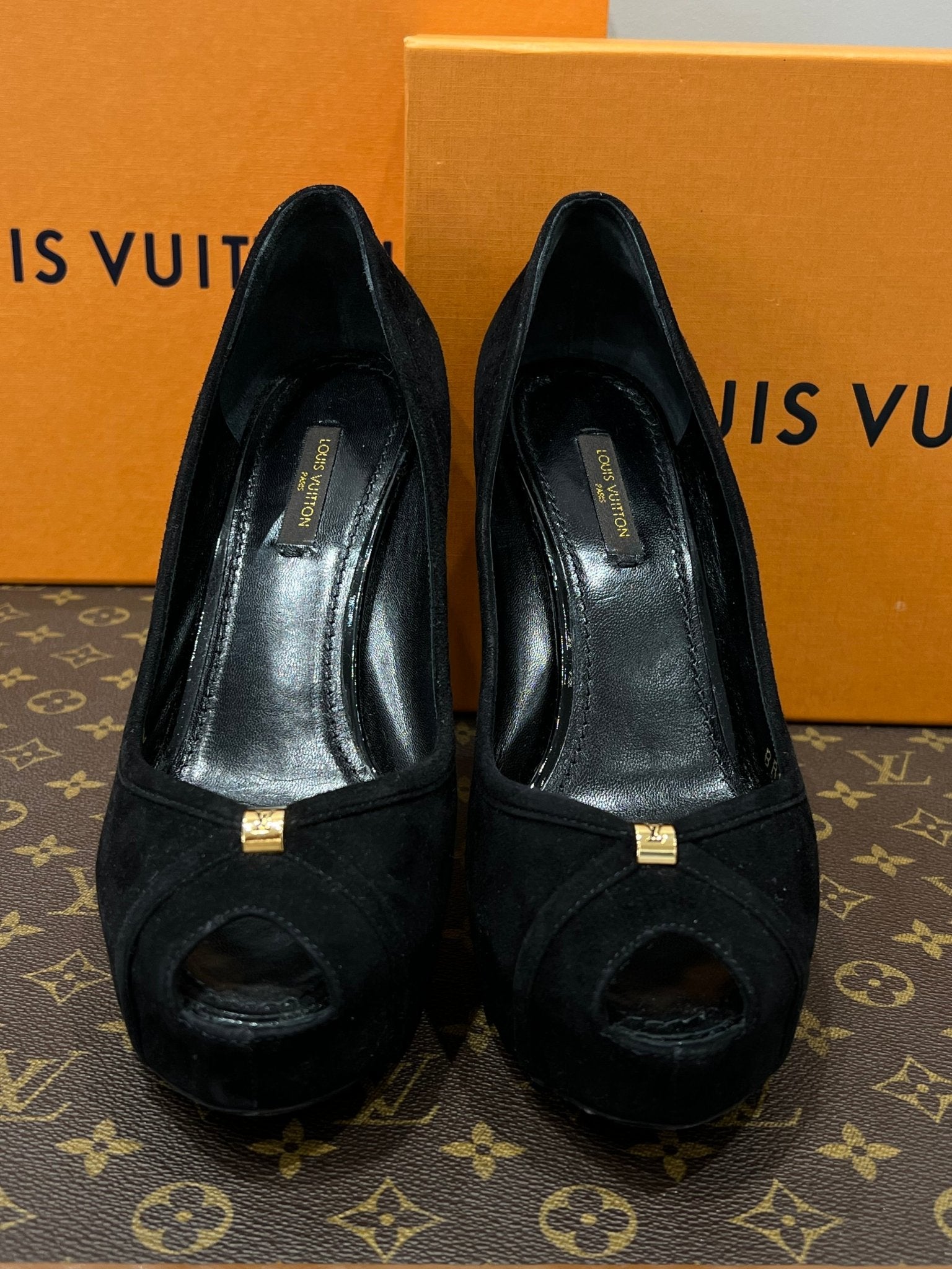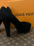 Les escarpins Louis Vuitton en velours avec plate-forme sont un symbole ultime de luxe et d'élégance. Le velours offre une texture somptueuse, tandis que la plate-forme ajoute une touche contemporaine et un confort supplémentaire. Ornés du célèbre monogramme LV de la maison de couture, ces escarpins incarnent l'essence du style sophistiqué et intemporel. Parfaits pour une soirée spéciale ou une occasion glamour, ces escarpins rehaussent instantanément toute tenue avec leur allure élégante et leur artisanat impeccable.