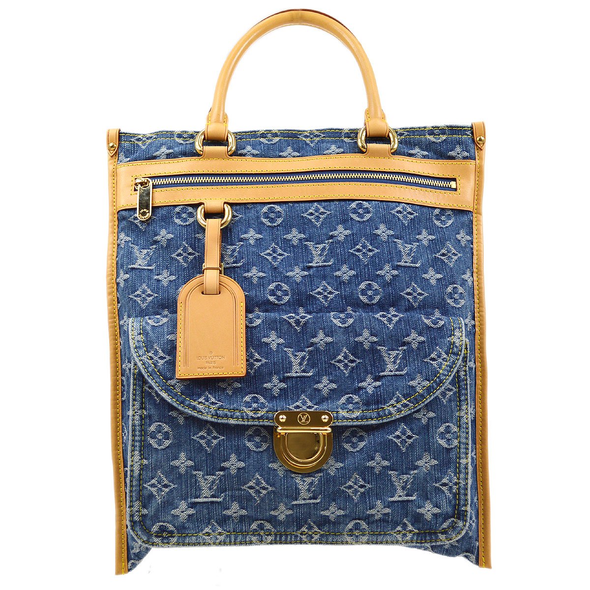 LOUIS VUITTON FLAT SHOPPER HAND TOTE BAG MONOGRAM DENIM M95018