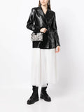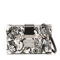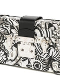 This piece also comes in a hardbody covered in printed leather, silver hardware, a magnetic closure and has an adjustable & detachable strap.