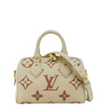 The Louis Vuitton Giant Speedy Bandoulière 20 in Cream Empreinte leather showcases oversized monogram embossing, a compact silhouette, and a versatile, adjustable strap for effortless style.