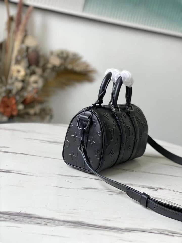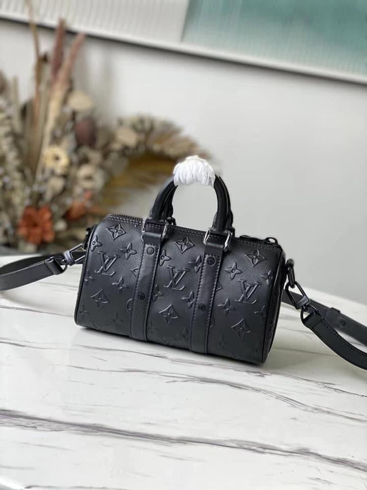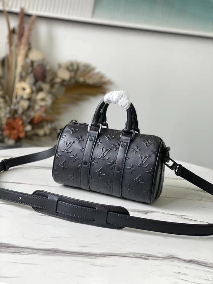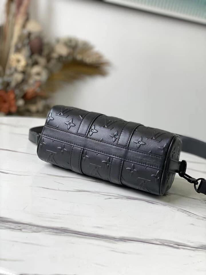 The handsome, compact Keepall XS is a scaled-down reinterpretation of Louis Vuitton’s classic Keepall bag. This Monogram Seal version features top-quality cowhide in elegant black, debossed with the iconic Monogram pattern for a rich tactile effect. With its double handle and adjustable strap, it’s a smart, practical accessory that makes a striking signature statement.