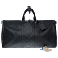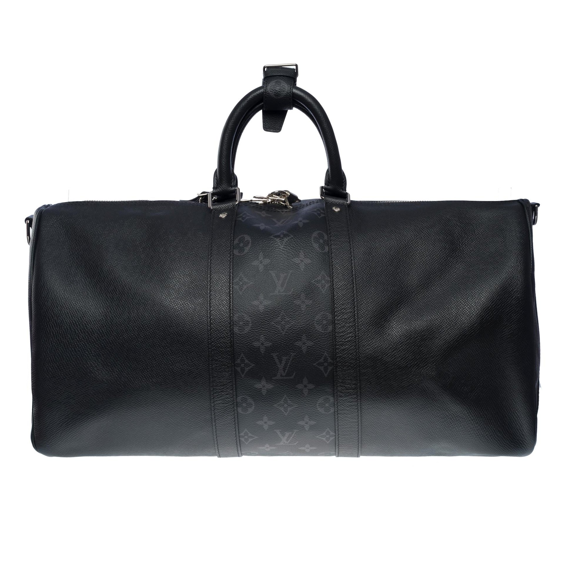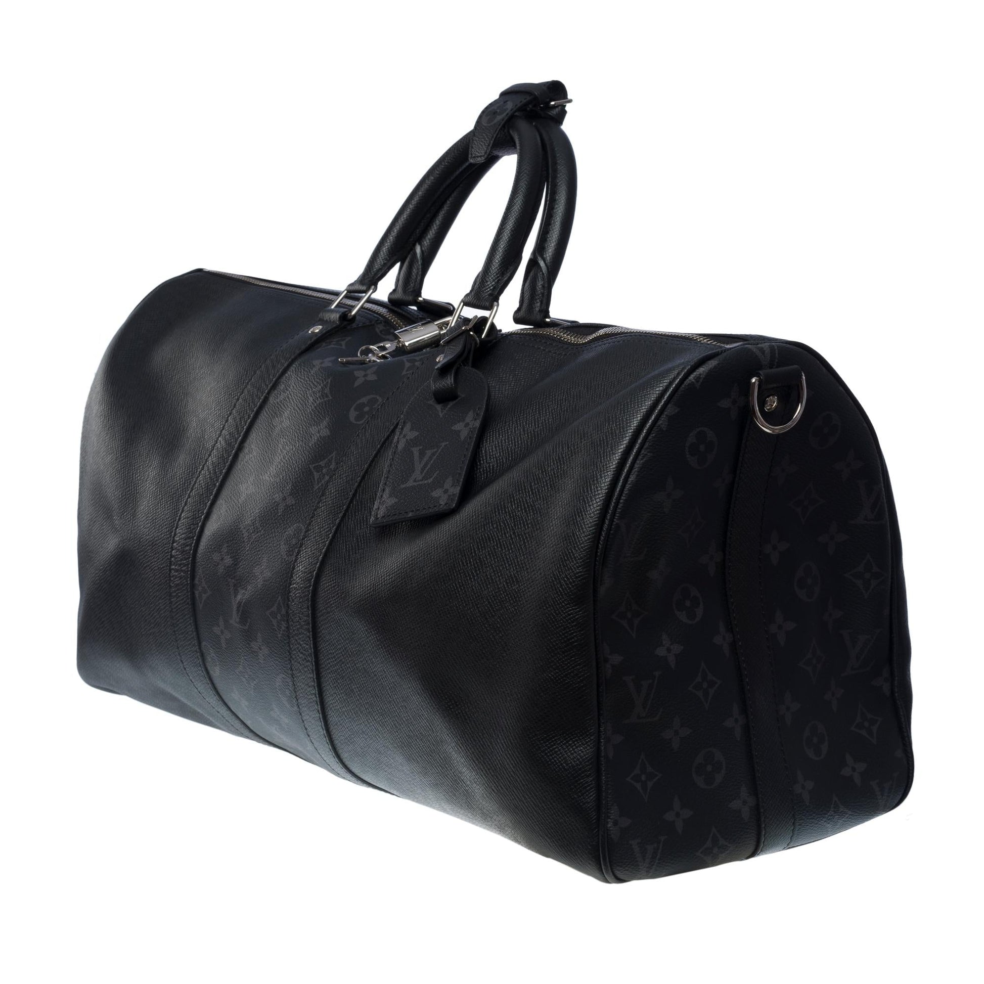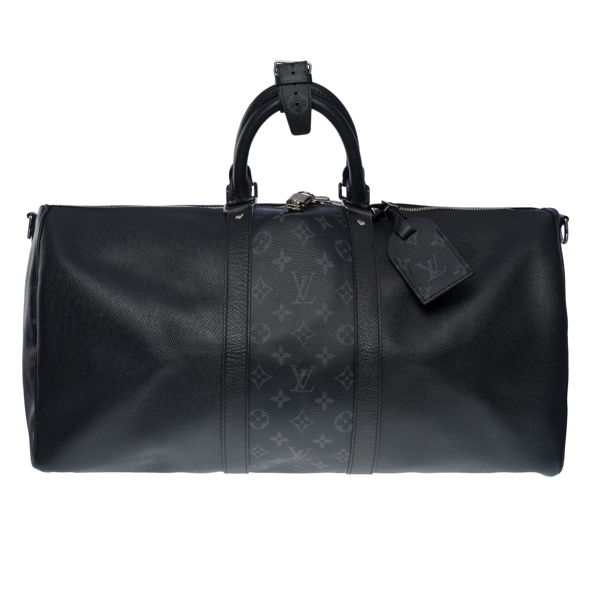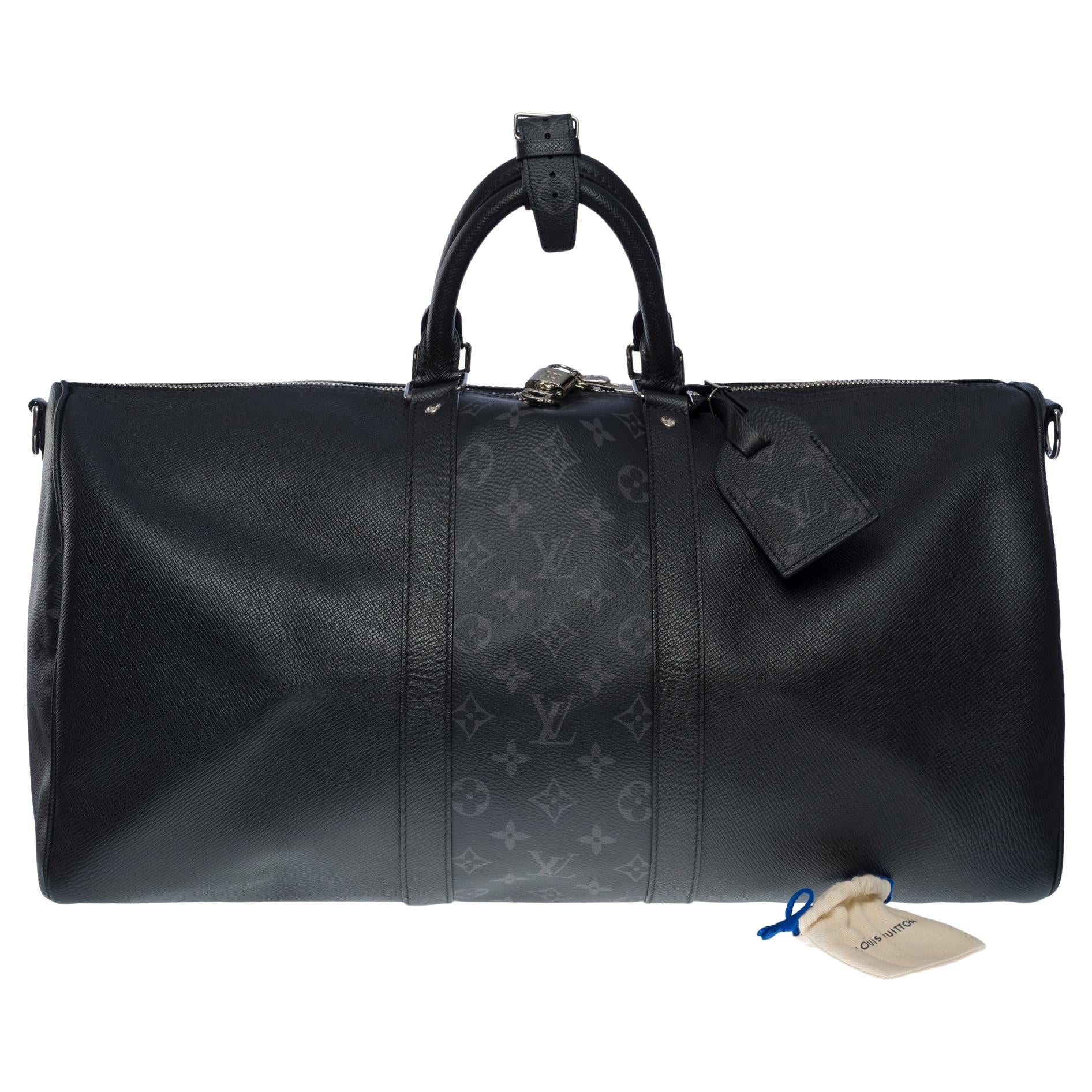 LOUIS VUITTON Keepall 50 Taigarama Travel bag in black canvas and leather , SHW