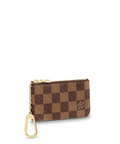 Crafted from historic Damier Ebene canvas, the Key Pouch is a simple design elevated by refined details, such as an LV-engraved zip and grained-leather lining. Playful and practical, it can be carried in different ways and will hold cash,s and other small items as well as keys.