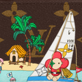 Characteristics: This Key Pouch is irresistibly charming, both inside and out. The Monogram exterior is adorned with a print of Vivienne, the House mascot, sailing with her friends in the tropics while the grained leather lining is a dragon-fruit pink that matches Vivienne’s petals and the flag on her sailboat.